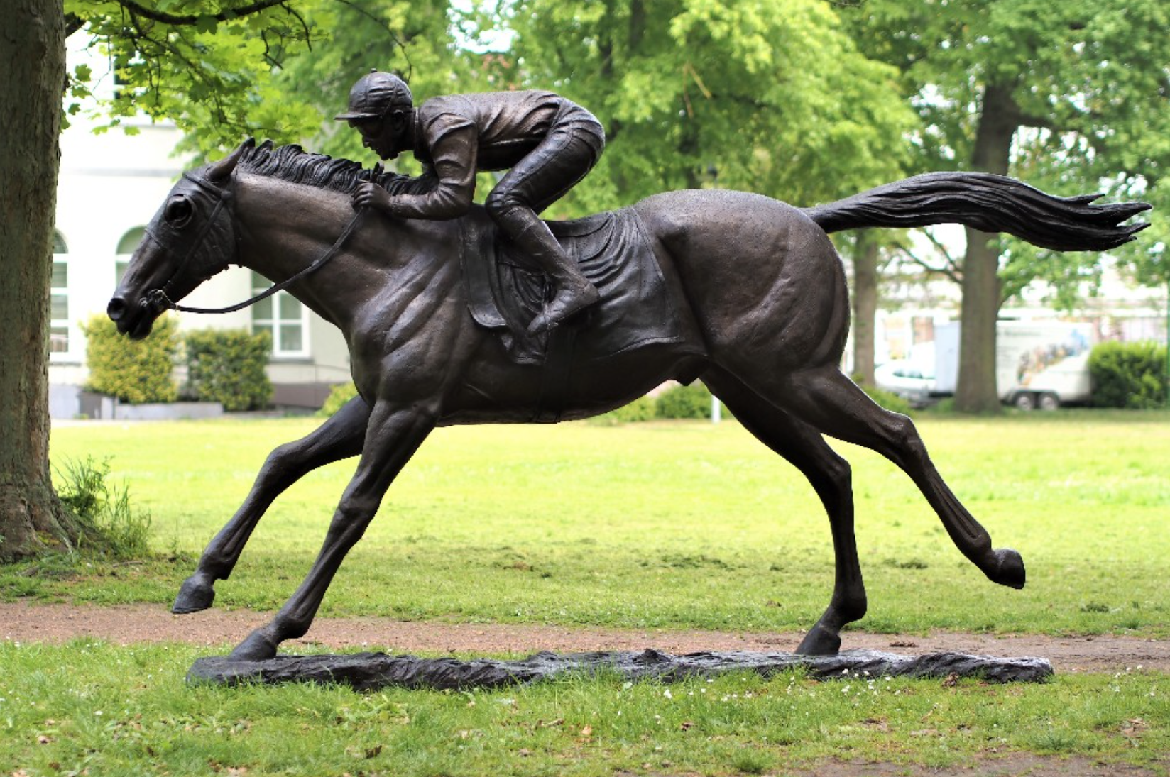 Sind Sie ein großer Pferdeliebhaber? Dann sehen Sie sich dieses Bronzepferd mit Jockey an. Bronze Pferdstatue mit einer Höhe von 200 cm. Bronze Pferd Skulptur mit einem Reiter auf einem galoppierenden Sportpferd. Pferde Skulpturen für riesige Grundstücke. Diese Skulptur Pferd oder Pferdfigur ist wunderschön im Detail ausgeführt.