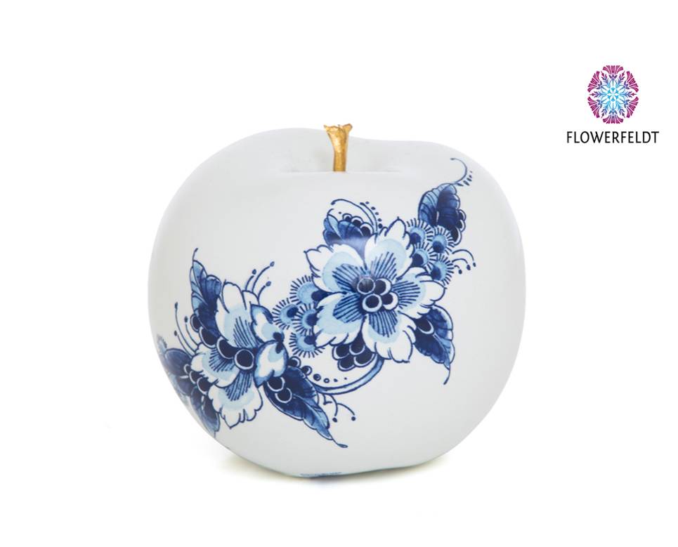 Sehr süß! Deko Apfel Gold mit einer Apfelstiel aus Blattgold. Extravagante Deko Apfel in Delfter Blau. Dieser Porzellan Apfel von 12 cm wird von einem der besten Maler sorgfältig Handbemalt. Der goldene Apfelstiel besteht aus 24 Karat Blattgold. Ein stilvolles Accessoire zu jeder Jahreszeit!