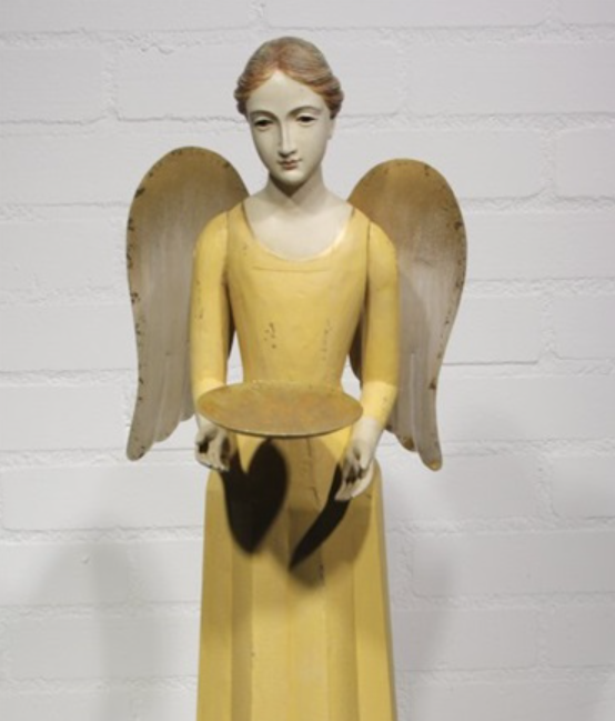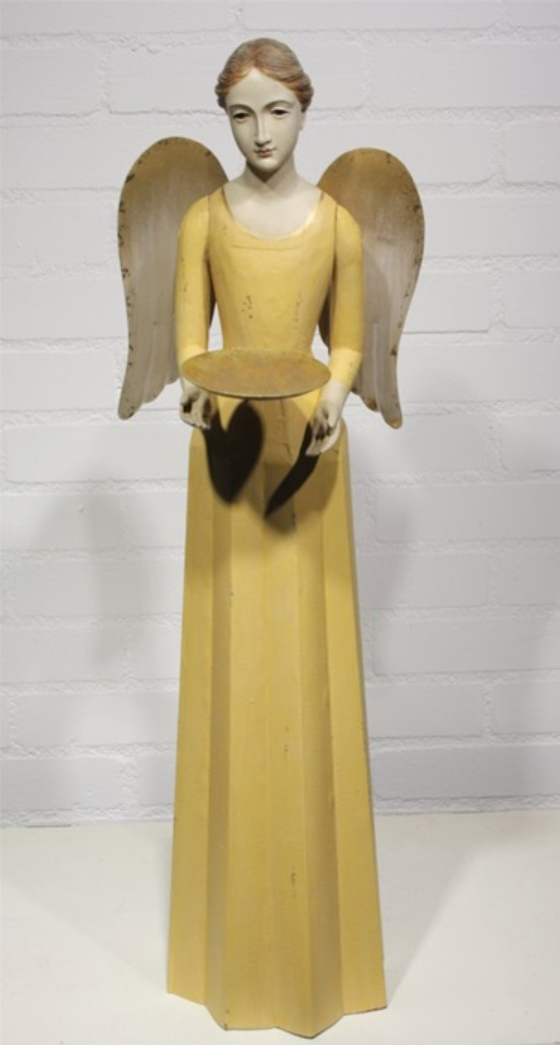 Deko Engelfigur aus der Flowerfeldt® Kollektion. Deko Engel aus Holz und Metall hergestellt. Diese gelbe Engel Figur ist modern und komplet handgefertigt. Moderne Engelfigur mit Schale von 75 cm Höhe. In kurz, einzigartige Engelfiguren die Sie sonst nirgends finden!