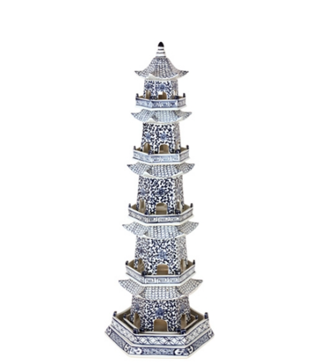 Deko Pagode für den Innenbereich. Deko Pagoda aus hochwertigem Porzellan hergestellt. Diese luxuriöse Pagoda Skulptur oder chinesischen Turms ist 73 cm hoch. Pagode Skulptur in Blau und Weiß. Dekorative Pagoda mit sehr schönen und raffinierten Details.