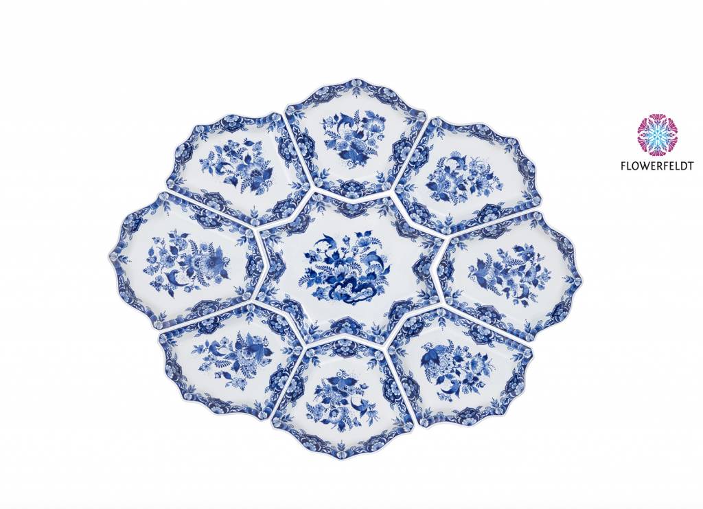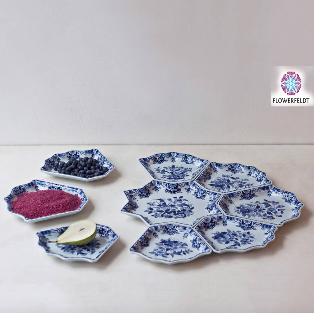 Porzellan Schalen mit königlichen Flair! Neunteilige Schalen Set in Delfter Blau. Die Delfter Blau Schalen bilden zusammen eine Lotusblume. Die Geschichte dieses Schalenset geht bis ins Jahr 1700 zurück. Diese Porzellanschalen dienten damals der Präsentation von gezuckerten Früchten. Die bereitung dieser Delikatesse war den Elite dieser Zeit vorbehalten. Eine speziales Angelegenheit für wohlhabender Frauen und sogar Orange Prinzessinnen! Das Haus of Orange besaß sogar hunderte of dieser exklusive Porzellanschalen.