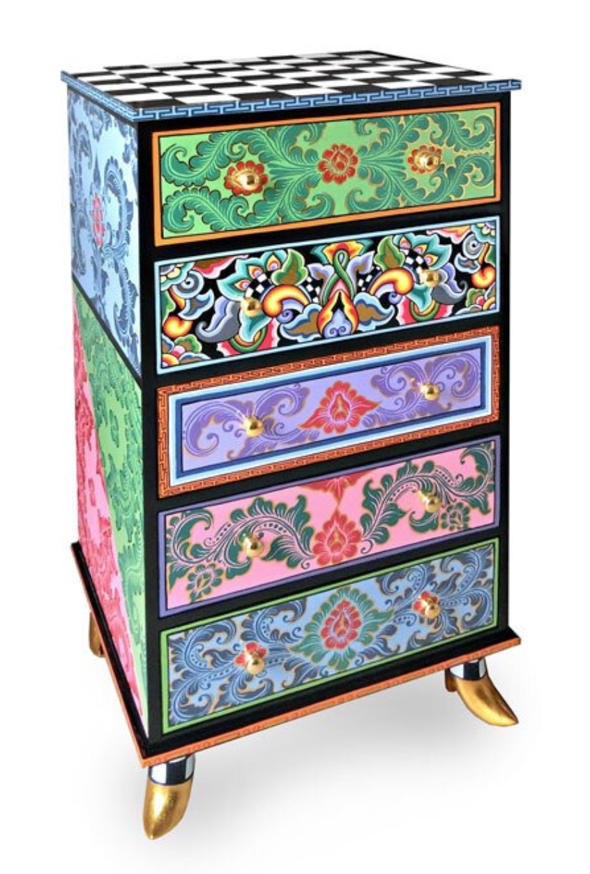 Designer Kommode mit vielen Schubladen. Design Kommoden mit bunten Fronten. Die hellen Farben dieses Designer Schränke verleihen Ihrem Interieur Atmosphäre. Designer Schrank mit auffälligen goldenen Beinen. Diese exklusive Kommode ist einfach modern, farbenfroh und einzigartig!