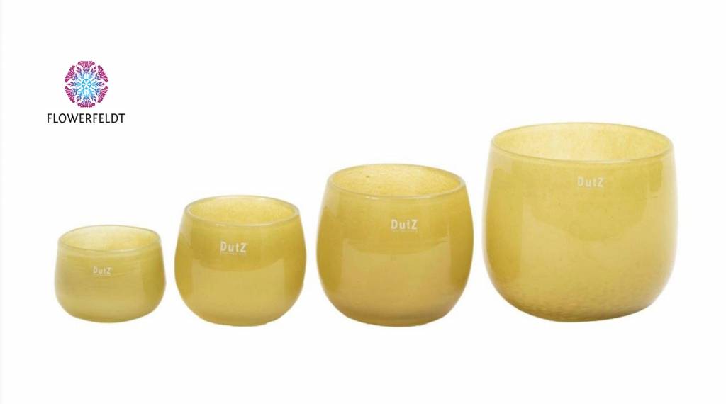 Übertöpfe mustard von DutZ. Diese ockergelbe Blumentöpfe sind Mund geblasen. Das traditionelle Mundblasen von Glasprodukte ist ein zeitraubender Prozess. Es erfordert Geduld und jahrelange Erfahrung! Das Ergebnis ist jedoch immer ein einzigartige Blumentopf mit Charakter. Das macht die gelbe Übertöpfe von DutZ etwas besonderes.