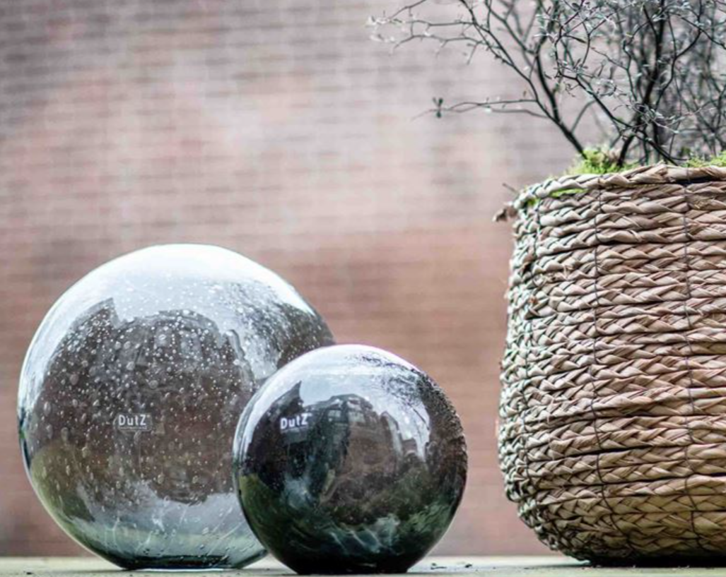 Gartenkugel Smoke aus der neue DutZ Kollektion. Diese grau schwarze Gartenkugeln sind Mund geblasen. Das traditionelle Mundblasen von Glasprodukte ist ein zeitraubender Prozess. Es erfordert Geduld und jahrelange Erfahrung! Das Ergebnis ist jedoch immer eine Gartenkugel mit Charakter. Das macht die garden ball grey von DutZ etwas besonderes.