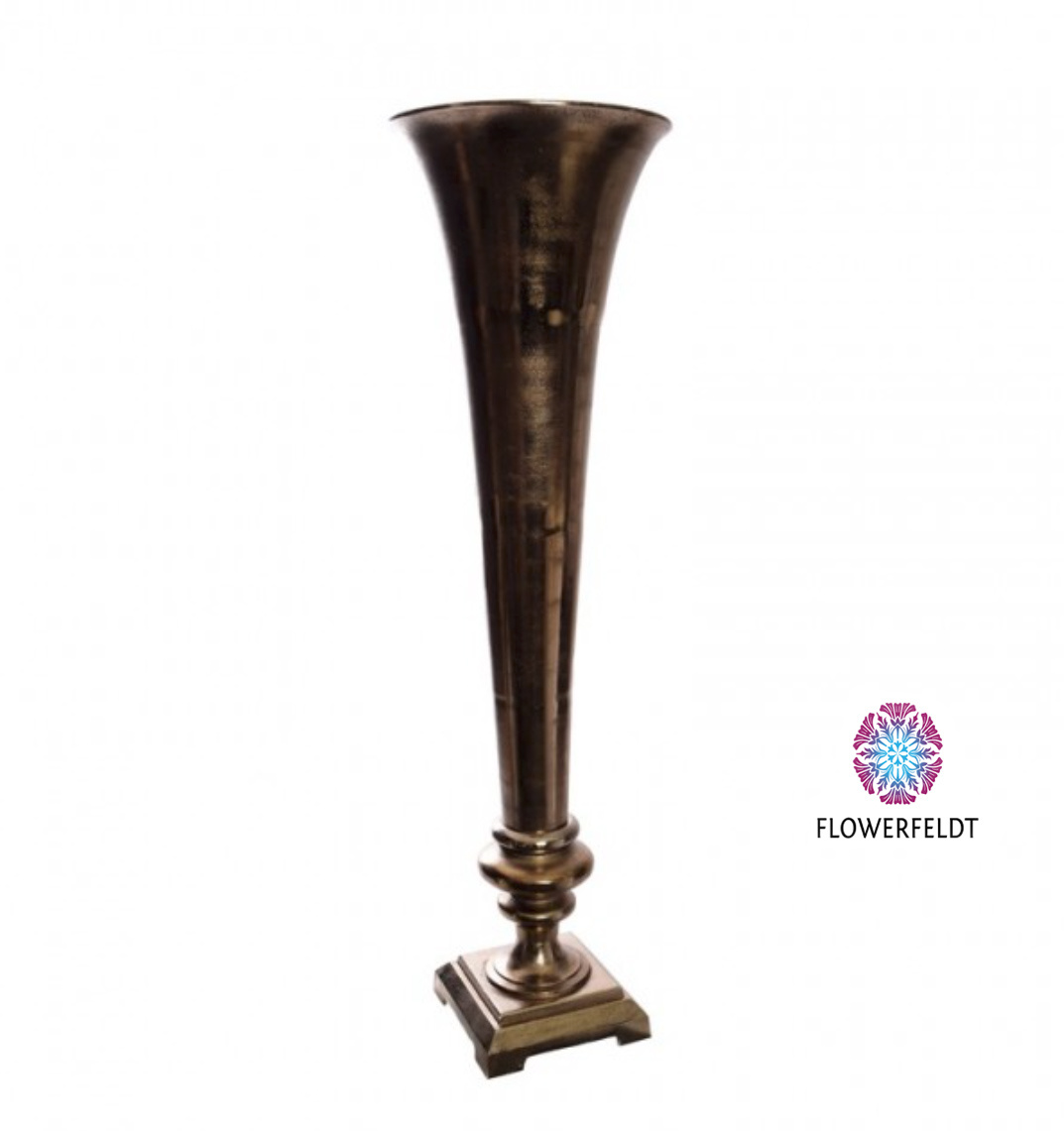 Goldene Vasen Jean: Goldvase mit einer Höhe von 111 cm. Dekovase Gold im klassischen Design. Gold vase Jean ist eine Trompetenvase aus hochwertigem Aluminium. Hohe vase gold mit einem stilvolle Ausstrahlung. Dekovasen gold auf Sockel für jahrelang genießen!