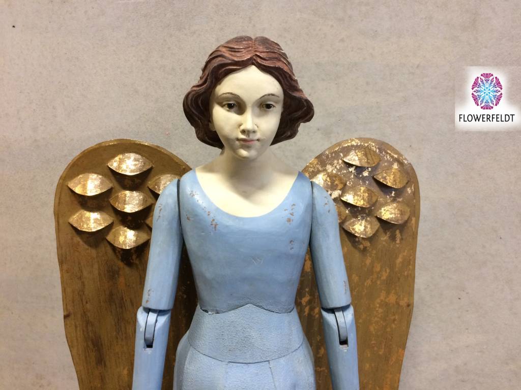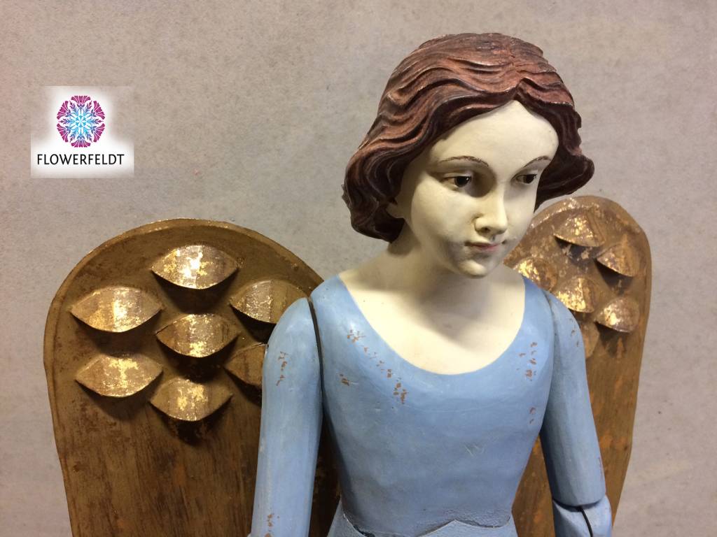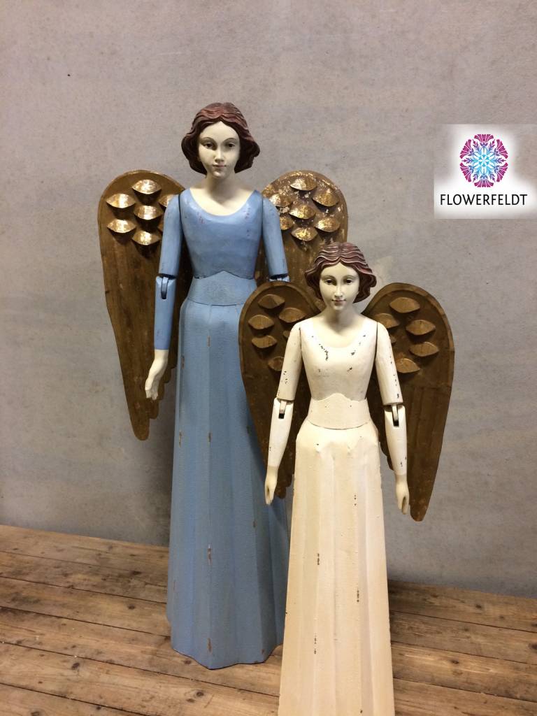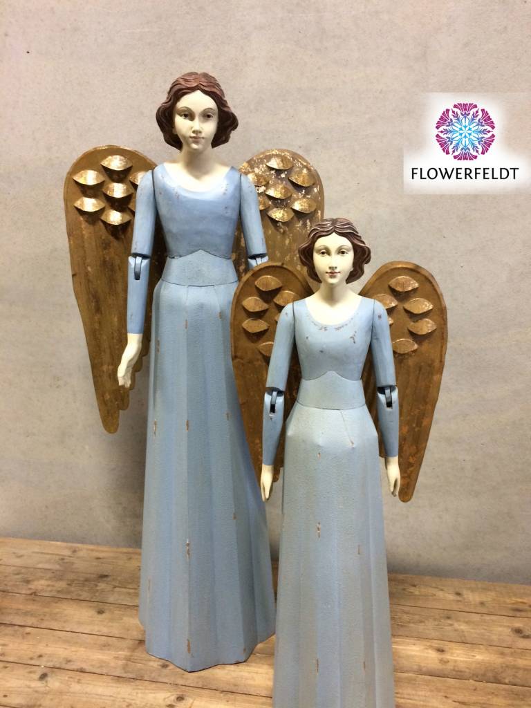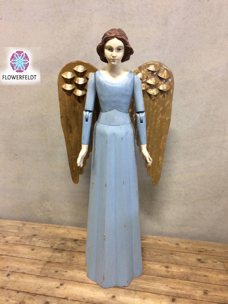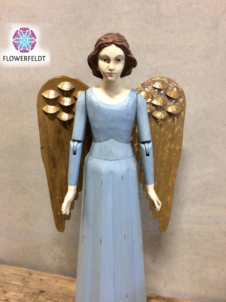 Große Engel statue aus der Flowerfeldt® Kollektion. Stilvolle und schöne Deko Engel für die Geschmacksmacher. Diese große Deko Engel ist handgefertigt und elegant. Große Engel Figur in blau. Dieser dekorative Engel hat goldene Flügeln. Moderne Engelsfigur und Stimmungsmacher für Ihr Interieur!