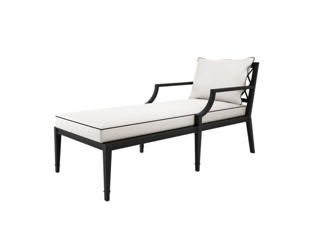 Liegestuhl Bella Vista in Mattschwarz und Weiß. Garten Liegestühle aus sehr massivem Aluminium. Liegestuhl Garten von Eichholtz: eine stilvolle Relaxstuhl für Ihren Garten, Wintergarten oder Dachterrasse. Mit seinem eleganten Look, dem schwarzen Rahmen und den weichen Kissen bietet es ein äußerst komfortables Erlebnis. Diese Garten Liegestuhl wird mit wasserabweisenden Kissen geliefert.