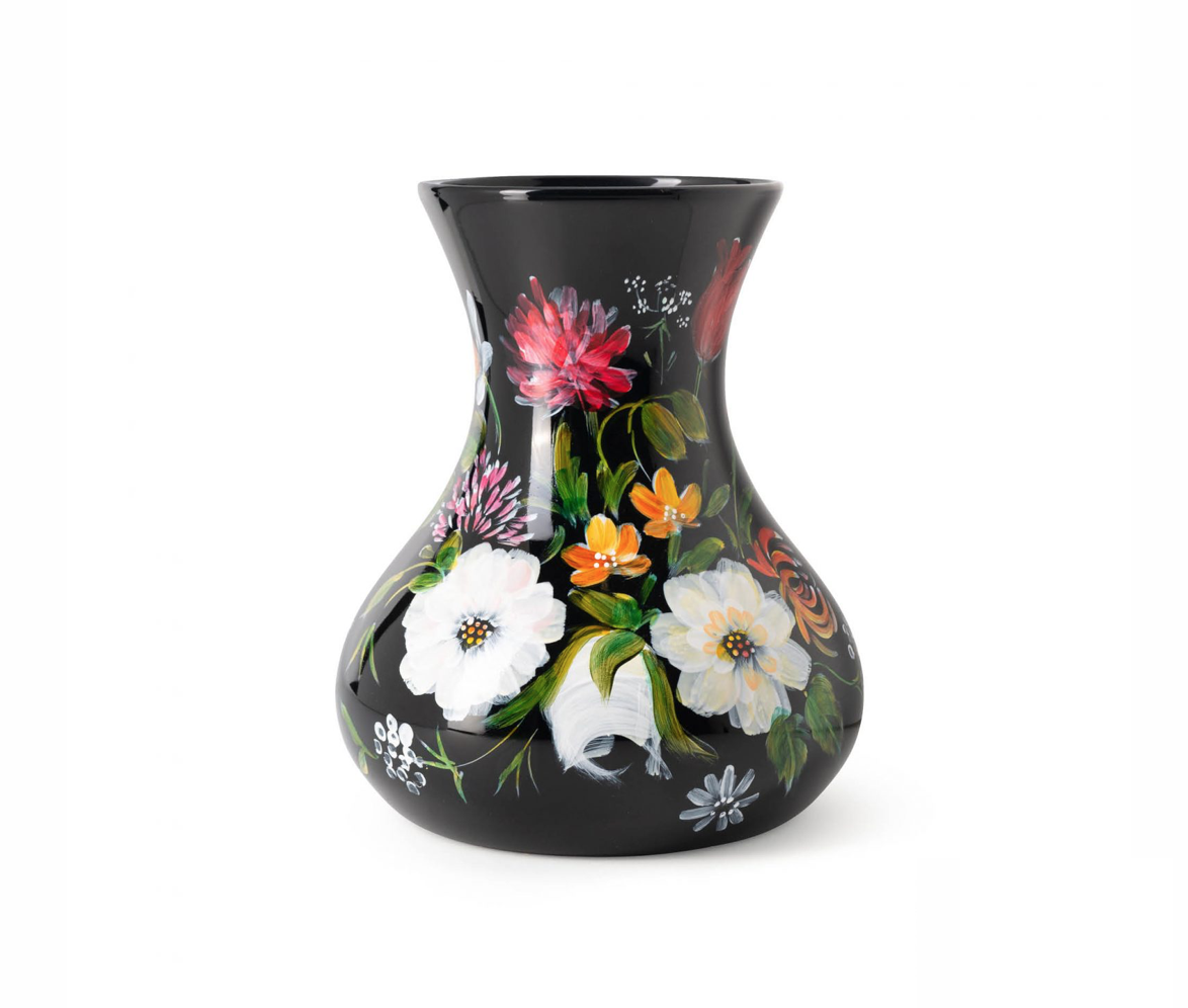 Die Royal Flowers Kollektion besteht aus mundgeblasenen Glaswaren. Diese luxus Vase wird traditionell (!) in Holzformen geblasen. Es geht also um echte Handwerkskunst. Aus diesem Grund ist jede schwarze Vase Royal Flowers einzigartig.