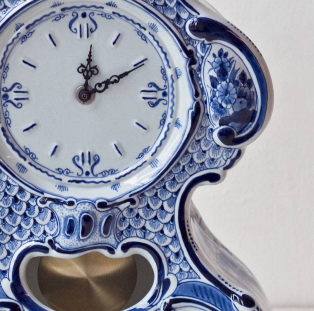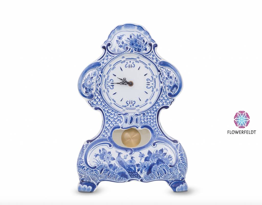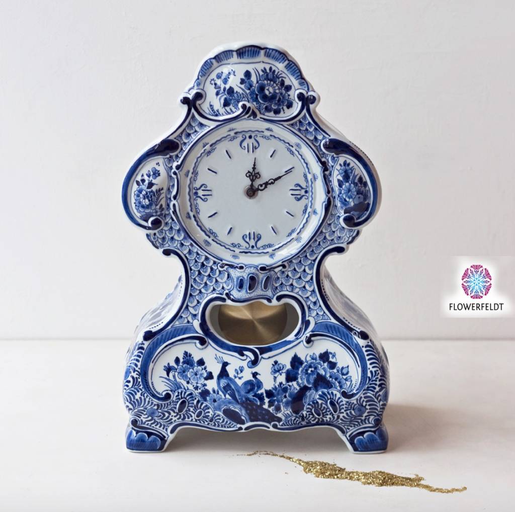Porzellan Tischuhr in Delfter Blau. Handbemalte Pendule in antikem Design. Delfter Pendule Uhren bestellen Sie sehr einfach online. Entdecken Sie wunderschöne Stücke, wie die Porzellan Pendeluhr in Delft Blau bei Flowerfeldt®.
