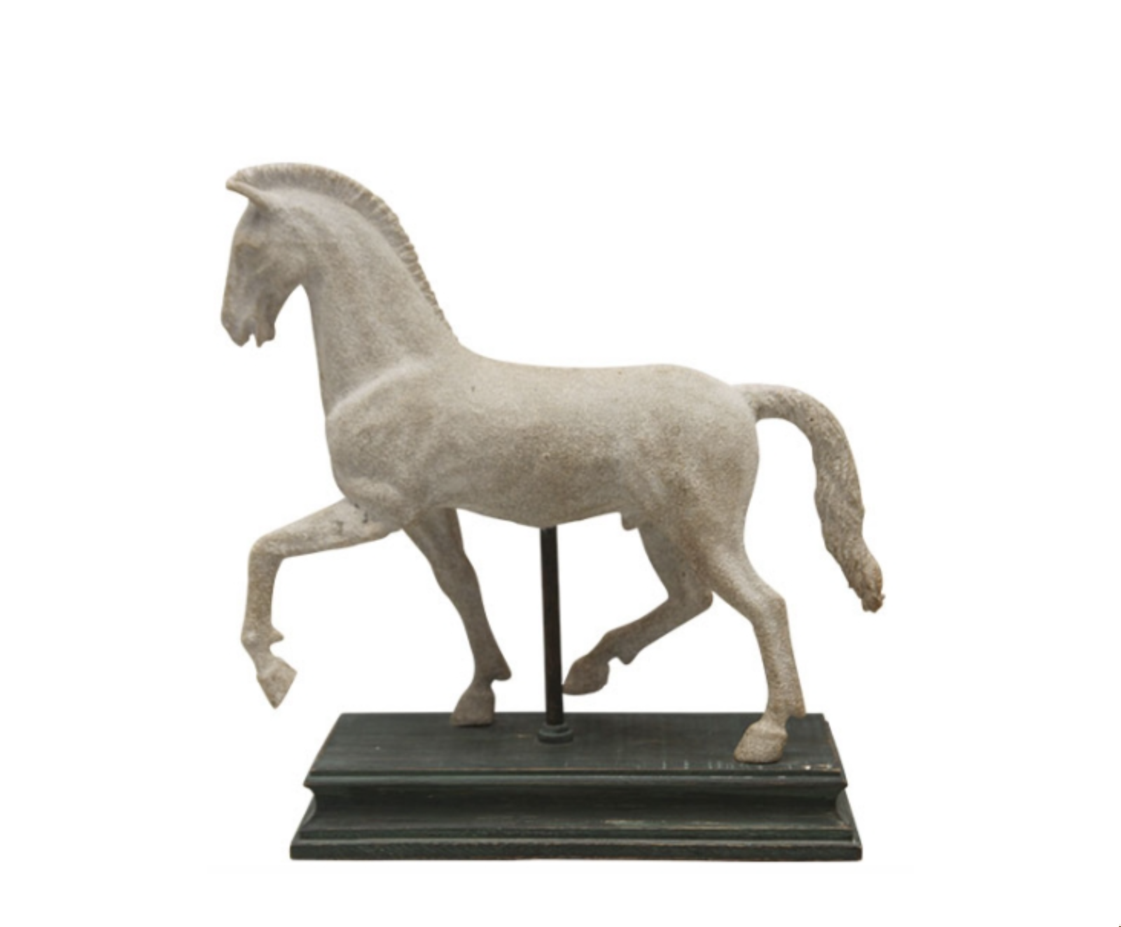 Pferd Figur True White: Pferdefigur aus weißem Stein. Pferd Statue auf einem schwarzen Sockel. Pferdefiguren mit luxuriösem Aussehen. Diese Pferd Skulptur ist 34 cm hoch und vollständig aus Stein geschnitzt. Klassische Pferdestatue für ein ländliches Interieur. Mehr einzigartige Pferde Statuen und Pferde Figuren online.