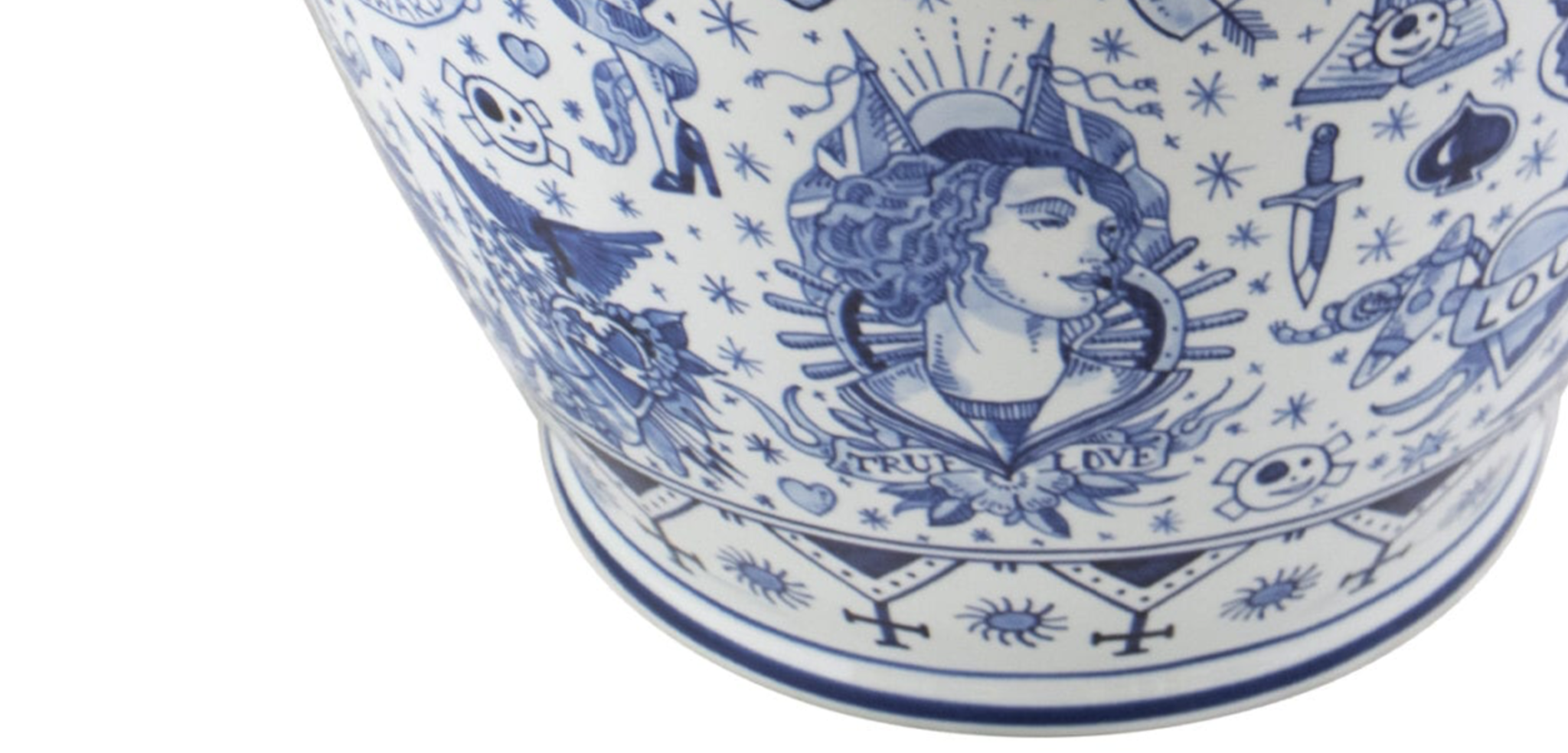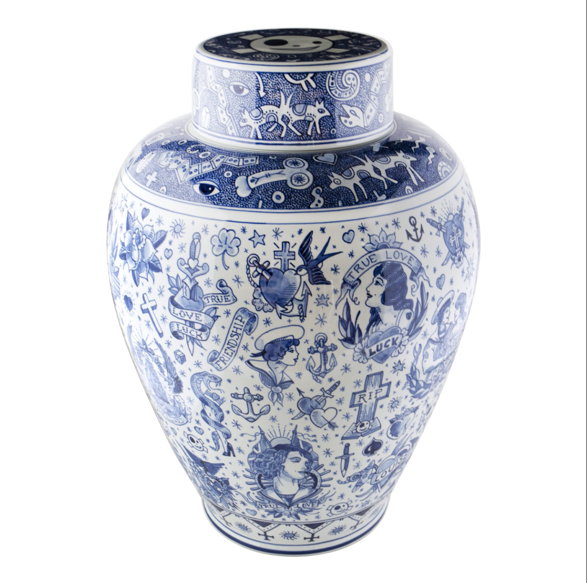 Suchen Sie eine einzigartige, exklusive Vase? Dann sehen Sie sich diese moderne Vase mit trendigen Tattoo-Symbolen an. Porzellanvasen in einer limitierten Auflage von nur 20 Exemplaren. Diese Porzellan Vasen werden von den besten Handwerkern handbemalt. Wunderschön detailliert, Qualität mit Klasse. Diese moderne Vasen werden mit einem Echtheitszertifikat geliefert. Kurz gesagt, Luxusvasen für Kunden mit Mut und die Qualität auf Wert schätzen!