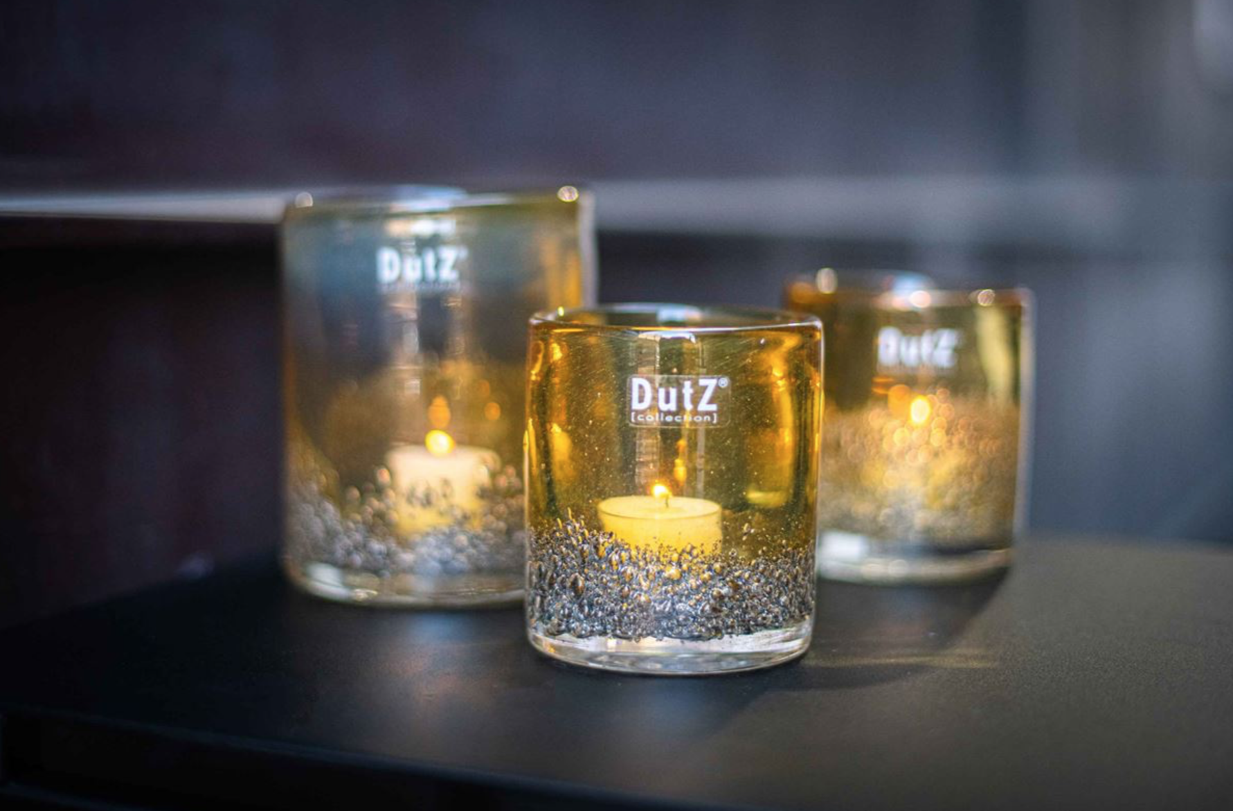 Die Glasteelichter gold bubbles sind in drei Größen erhältlich. Jede Glasteelicht bubbles gold von DutZ ist ein Erlebnis und wird exklusiv für Sie hergestellt.