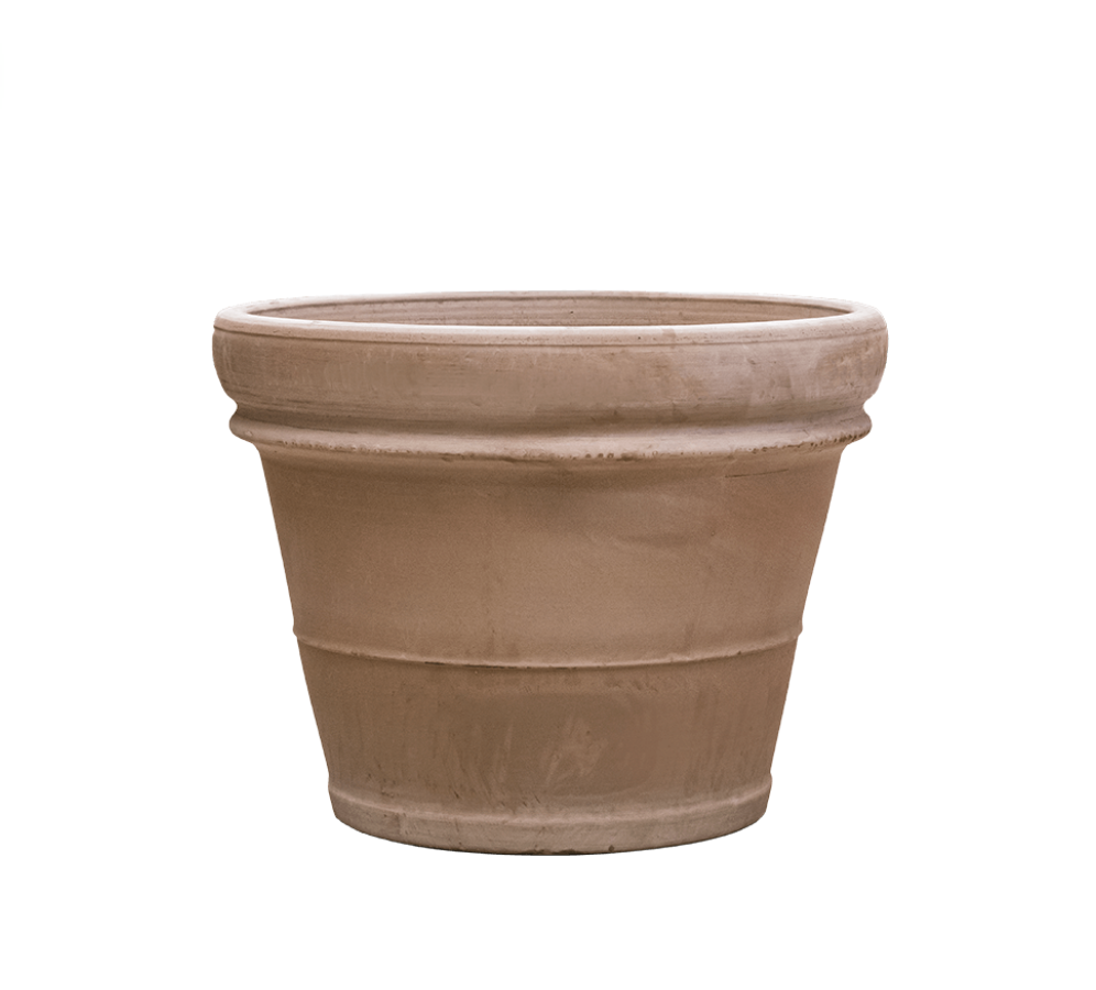 Terrakotta Übertopf mit einem Durchmesser von 76 cm. Terrakotta Töpfe von Flowerfeldt® werden traditionell hergestellt. Dieser wunderschöne Terrakottatopf ist ein echter Stimmungsmacher. Terrakotta Übertöpfe mit natürlichem Aussehen. Handgemachte Terrakotta Töpfe für botanische Pflanzen oder mittelgroße Olivenbäume.