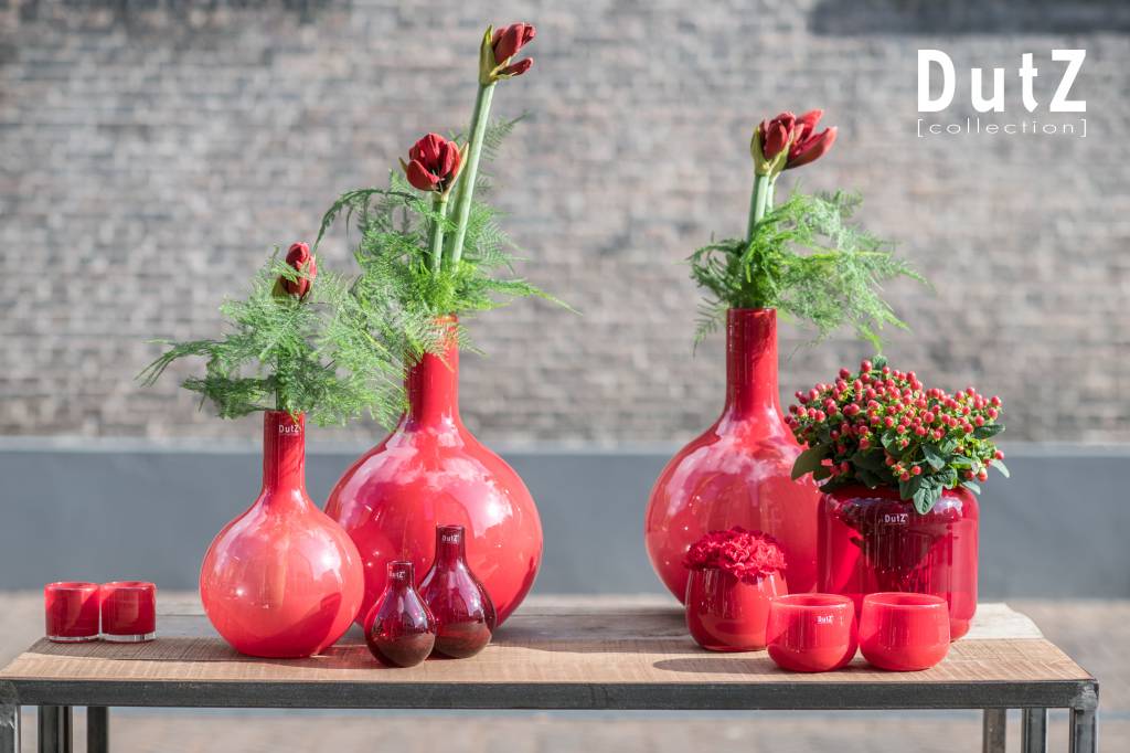 Moderne rote Blumentöpfe von DutZ. Diese Übertöpfe rot sind Mund geblasen. Das traditionelle Mundblasen von Glasprodukte ist ein zeitraubender Prozess. Es erfordert Geduld und jahrelange Erfahrung! Das Ergebnis ist jedoch immer eine rote Blumentopf mit Charakter. Das macht die Blumentöpfe rot von DutZ etwas besonderes.