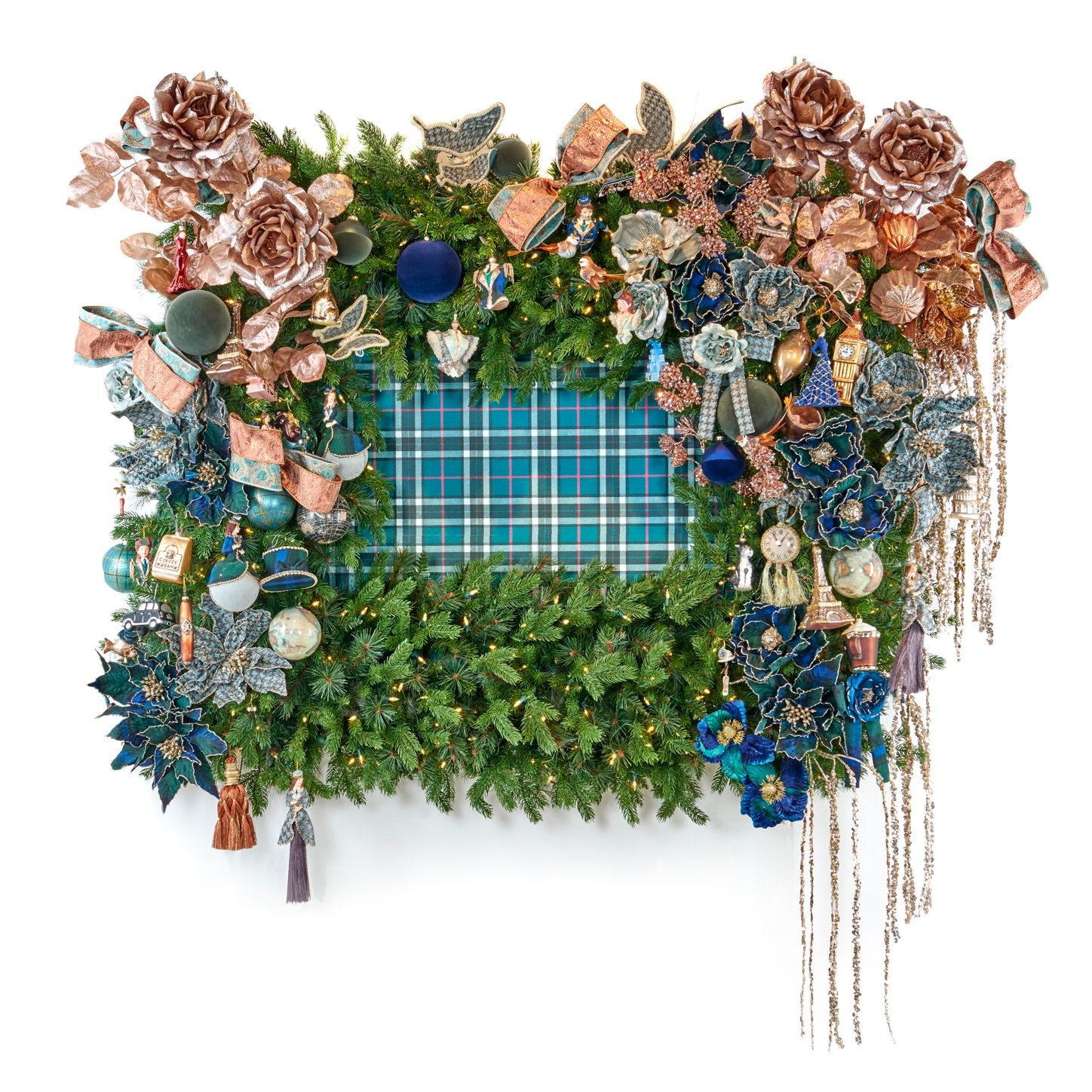 Quadratische Weihnachtskranz von 127 cm. Große Deko Weihnachtskranz von Goodwill. Große Weihnachtskranz mit künstlicher Blumen und dekorativen Bögen. Weihnachtskranz Quadratisch für stimmungsvolle Weihnachten. Festliche und exklusive Weihnachtskranz für ein einzigartiges Geschäftspräsentation!