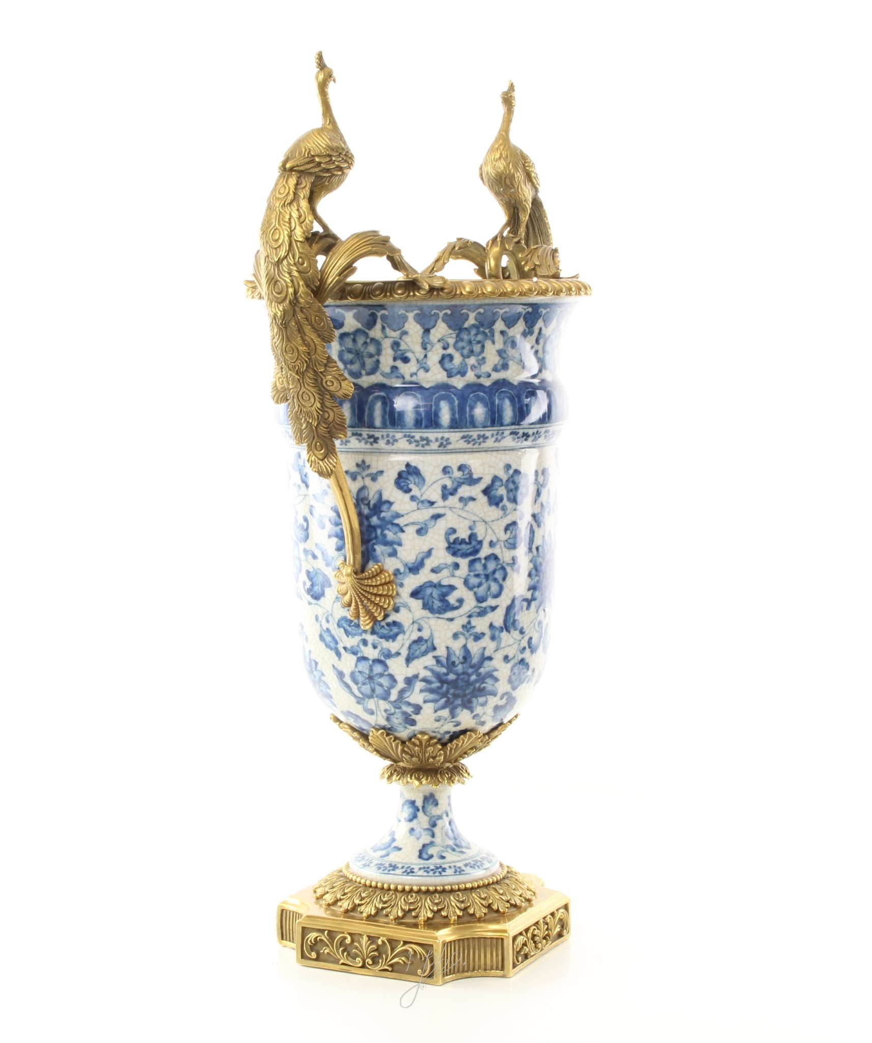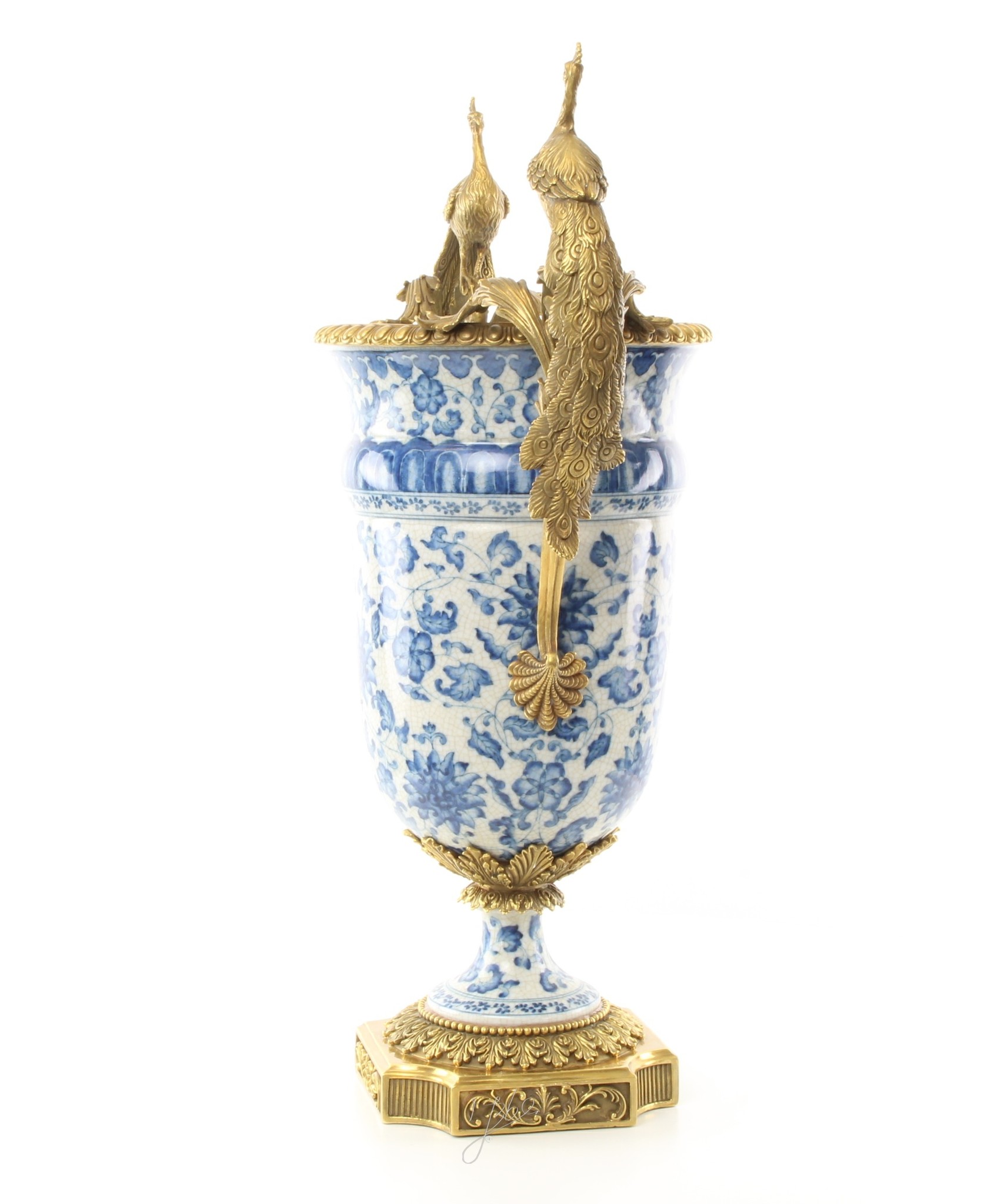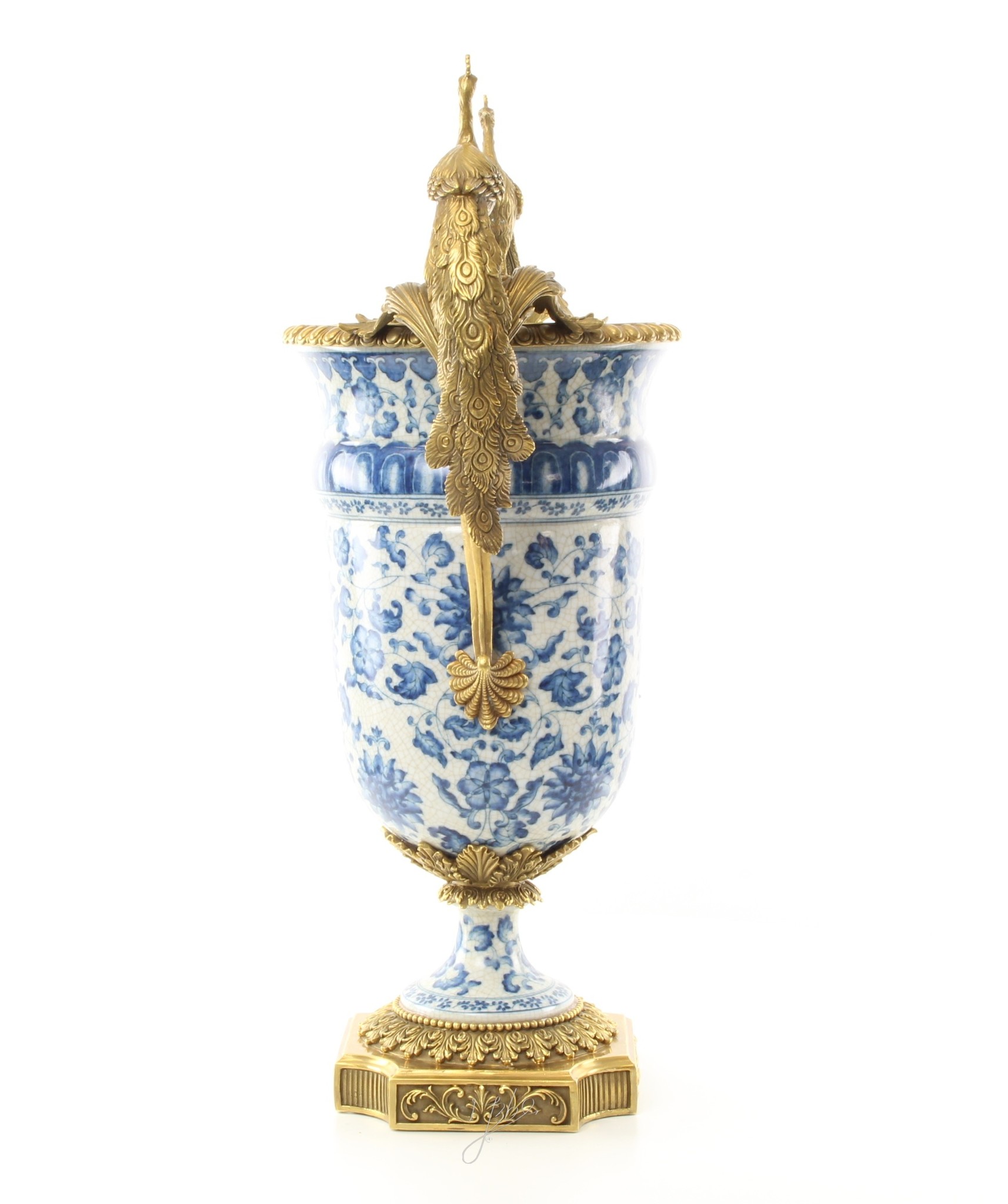 Antique vases Kings Blue with peacocks in bronze