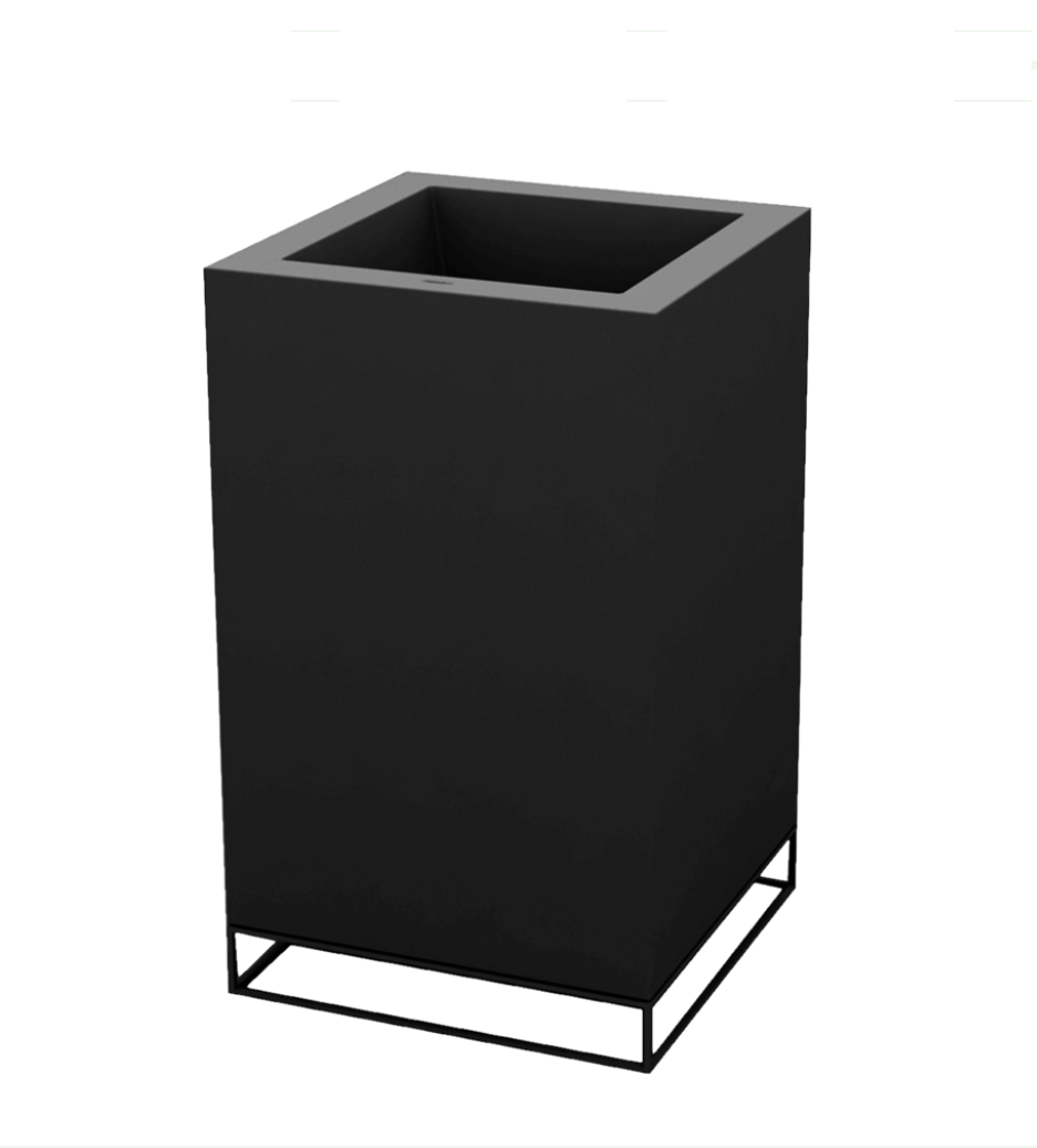 Black planter Berlin: large black pot for inside and outside use. Black planters on metal frame. Black design pot of 100 cm height. Available in 14 different colors. These black pots are weather-resistant and have a special integrated inner box. Black plant pot, available in 14 different colors. These design planters that are finished to perfection!