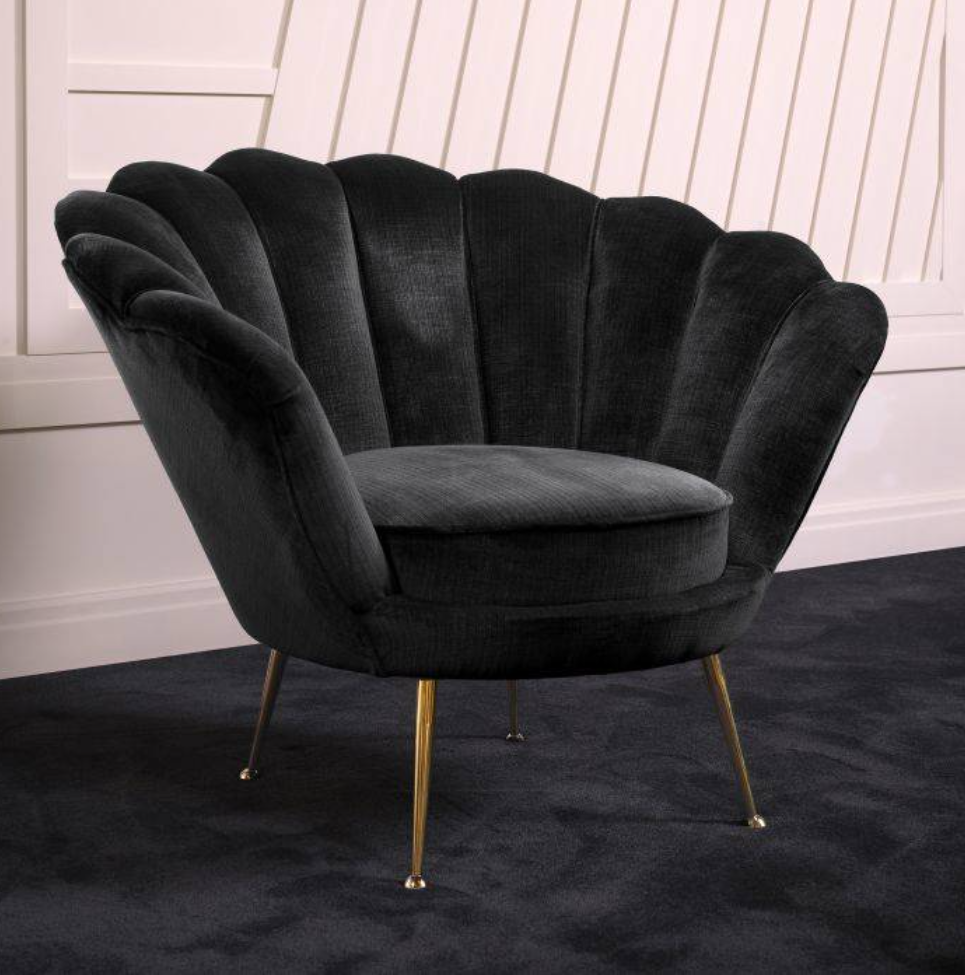 Design chair Trapezium by Eichholtz. Design chairs in the shape of a large oyster. Designer chair by Eichholtz, available in five gorgeous colors. Eichholtz chair in a solid color pattern. These luxury lounge chairs from Eichholtz are available in five colors: