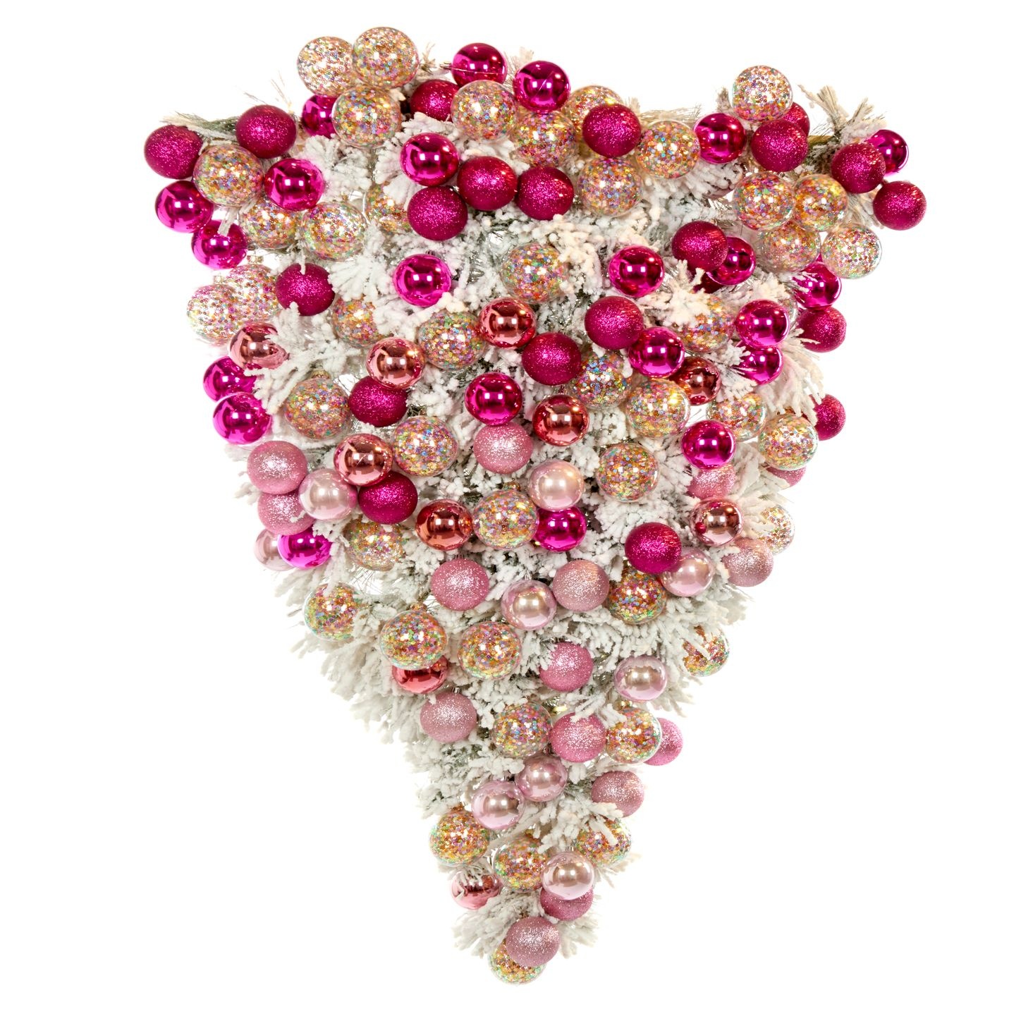 Luxury Christmas wreath Pink Heart. Christmas wreaths in the shape of a big heart. Decorative Christmas wreath full of pink glitter baubles. Stunning design. Decorative Christmas wreath for many years to come!