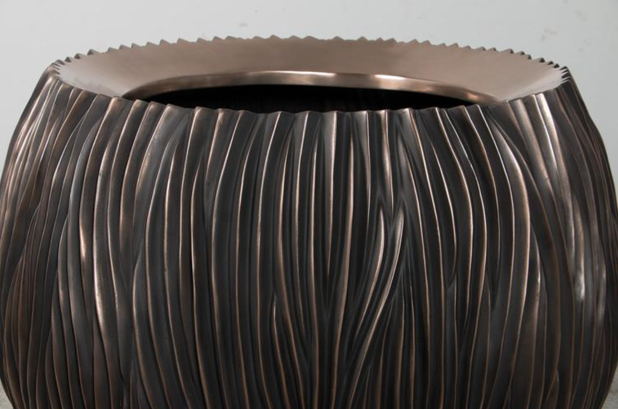 Design planter Dublin: design flower pot with modern, organic form. Design pot for inside and outside use. Large flower pots with a refined wave structure. These design planters are 120 cm wide. Ideal eye-catcher for large reception areas and impressive outdoor locations.