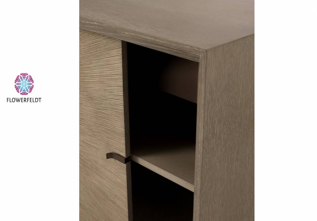 Dresser Lazarro from the collection of the internationally renowned brand Eichholtz. Retro design sideboard with wink to the fifties. Design sideboards of veneered oak. Nicely carved wooden front panels. In two words: extremely impressive! Luxurious design dresser with subtle handles, entirely in keeping up the minimalist look. Modern Eichholtz dresser for the real design perfectionists!