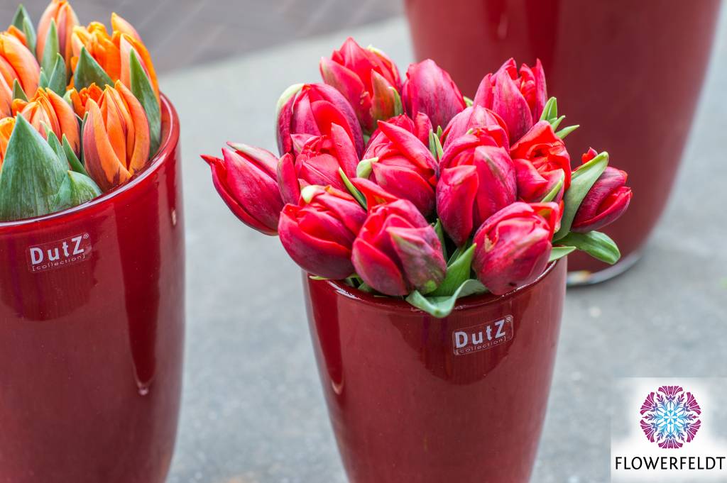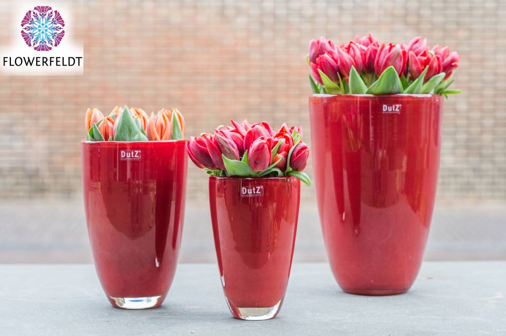 Beautiful Flowerfeldt® glassware is an asset to your interior. You will definitely add exclusivity to your interior when you bring the red vases of DutZ into your house. These red glass vases are timeless, mouth-blown and are of uncompromising quality. Each red flower vase has its own character. That makes the glass vases red extra special.