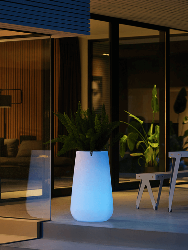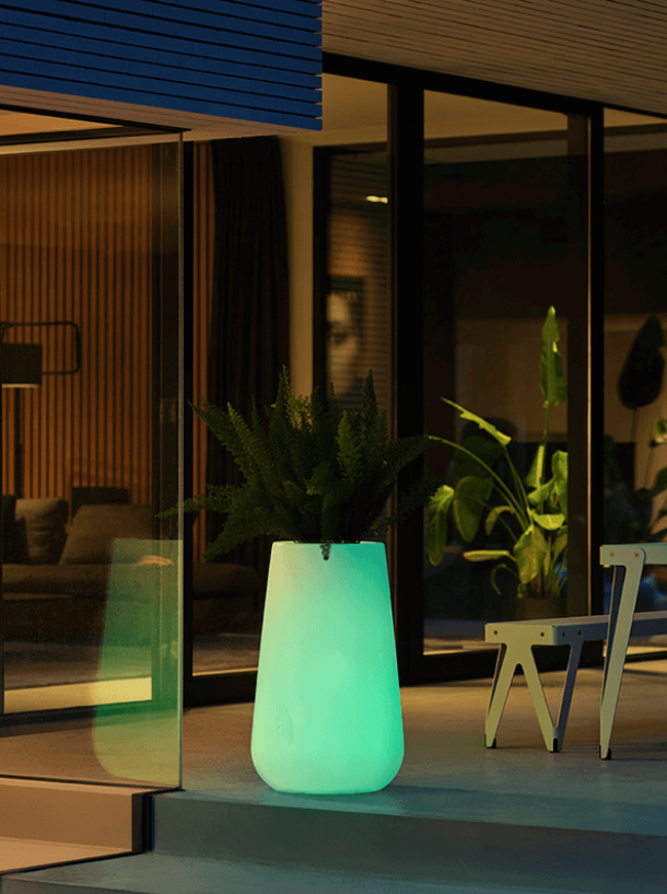 Looking for illuminated flower pot? Illuminated planter is a wonderful outdoor atmosphere maker. Illuminated planters with LED light of 79 cm height. This illuminated plant pot with LED light has a modern design. Illuminated outdoor pot made of durable resin. Illuminated pots with colored LED lighting for 20,000 hours of light fun. Outdoor pots that brings relaxed charm to your garden space!