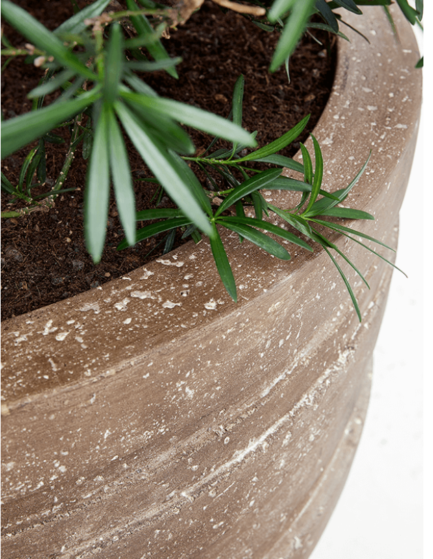 Garden pot Beijing: large flower pot for your terrace or patio. Modern planter XXL with a diameter of 110 cm. These outdoor pots XXL are frost, water and UV resistant. Stylish outdoor pot in brown for customers with large terraces or extensive gardens!