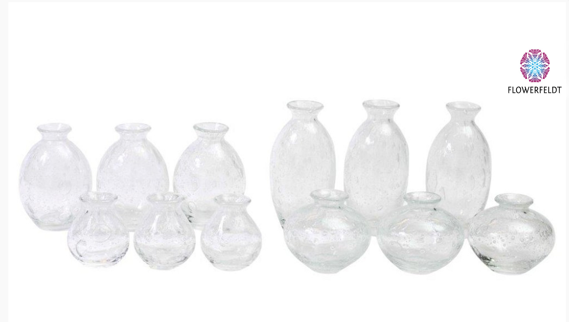 Beautiful Flowerfeldt® glassware is an asset to your interior. You will definitely add exclusivity to your interior when you bring the set Nadiel clear bubbles into your house. The set Nadiel clear bubbles is timeless, mouth-blown and is of uncompromising quality. Each transparant vase has its own character. That makes these transparent glass vases extra special.