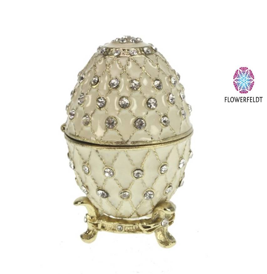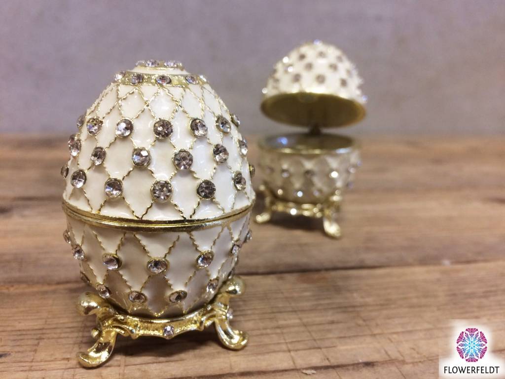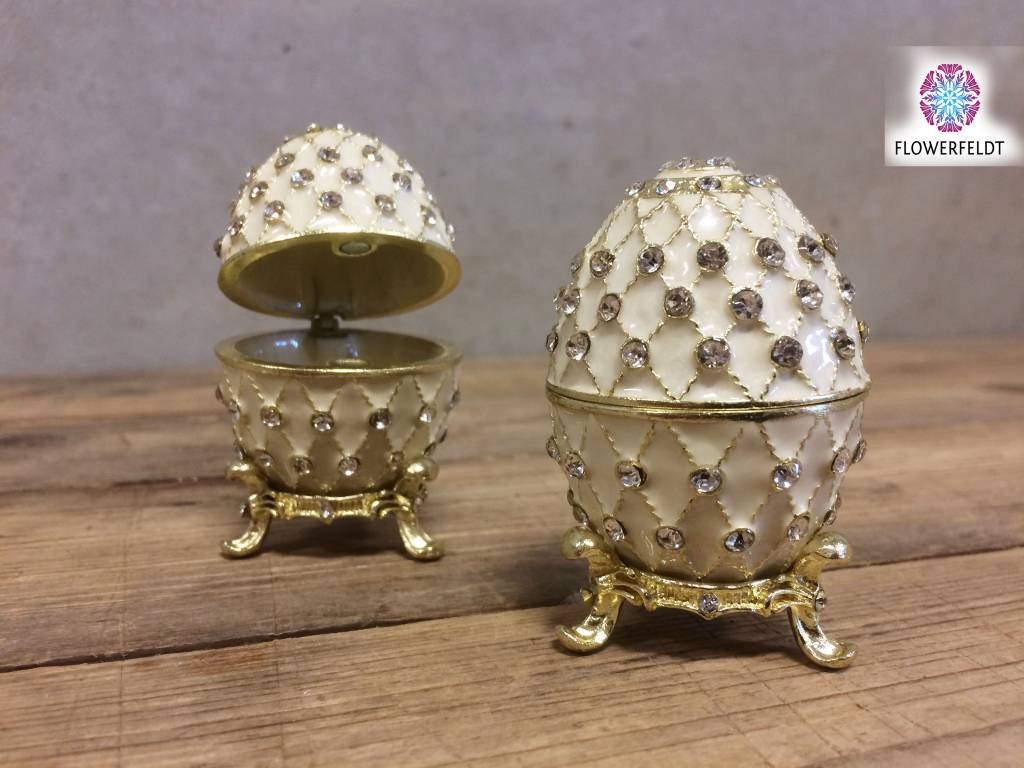 Egg on foot from the Flowerfeldt® collection. Stylish home accessory for real trendsetters. This luxurious Fabergé egg in the colors gold and creme is made by hand. A Russian Easter or ornamental egg to enjoy for years to come!