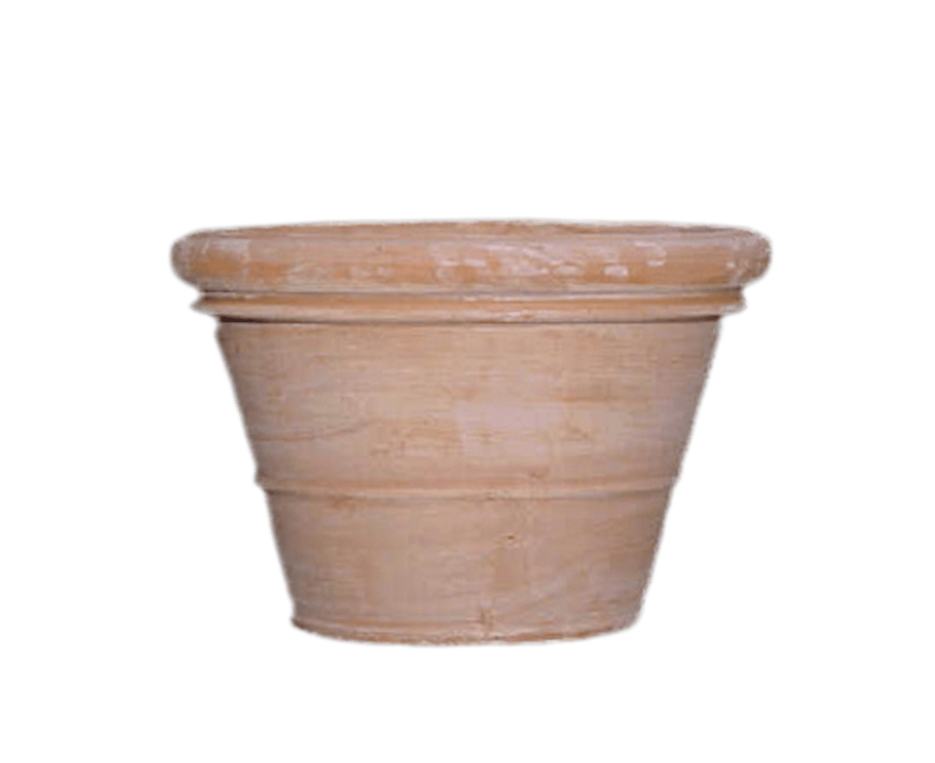 Terracotta planter XXL with a diameter of 100 cm. Our terracotta pots are traditionally made. Giant terracotta pot with double border. Terracotta pots and terracotta planters for botanical garden plants or large olive trees.
