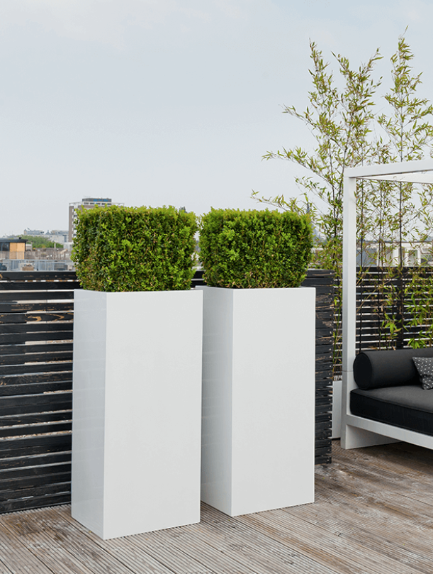 Uit de nieuwste collectie! Bloempotten wit Aspen in glossy white. Deze witte potten zijn gemaakt van polystone. Ideale bloempotten groot voor hoge planten. Deze moderne bloempotten wit groot zijn hoogwaardig afgewerkt en hebben een hoogte van maar liefst 120 cm. Grote witte potten voor een imposante entree of receptiehal.