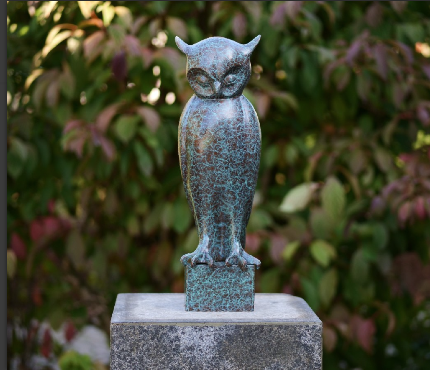 Bronzen uil figuur van 41 cm hoogte. Bronzen uil sculptuur, tijdloos ontwerp. Metalen uil gemaakt van hoogwaardig brons. Bronzen tuinbeelden van een slapende uil. De compromisloze kwaliteit van deze bronzen uilen beelden staat garant voor tientallen jaren plezier!