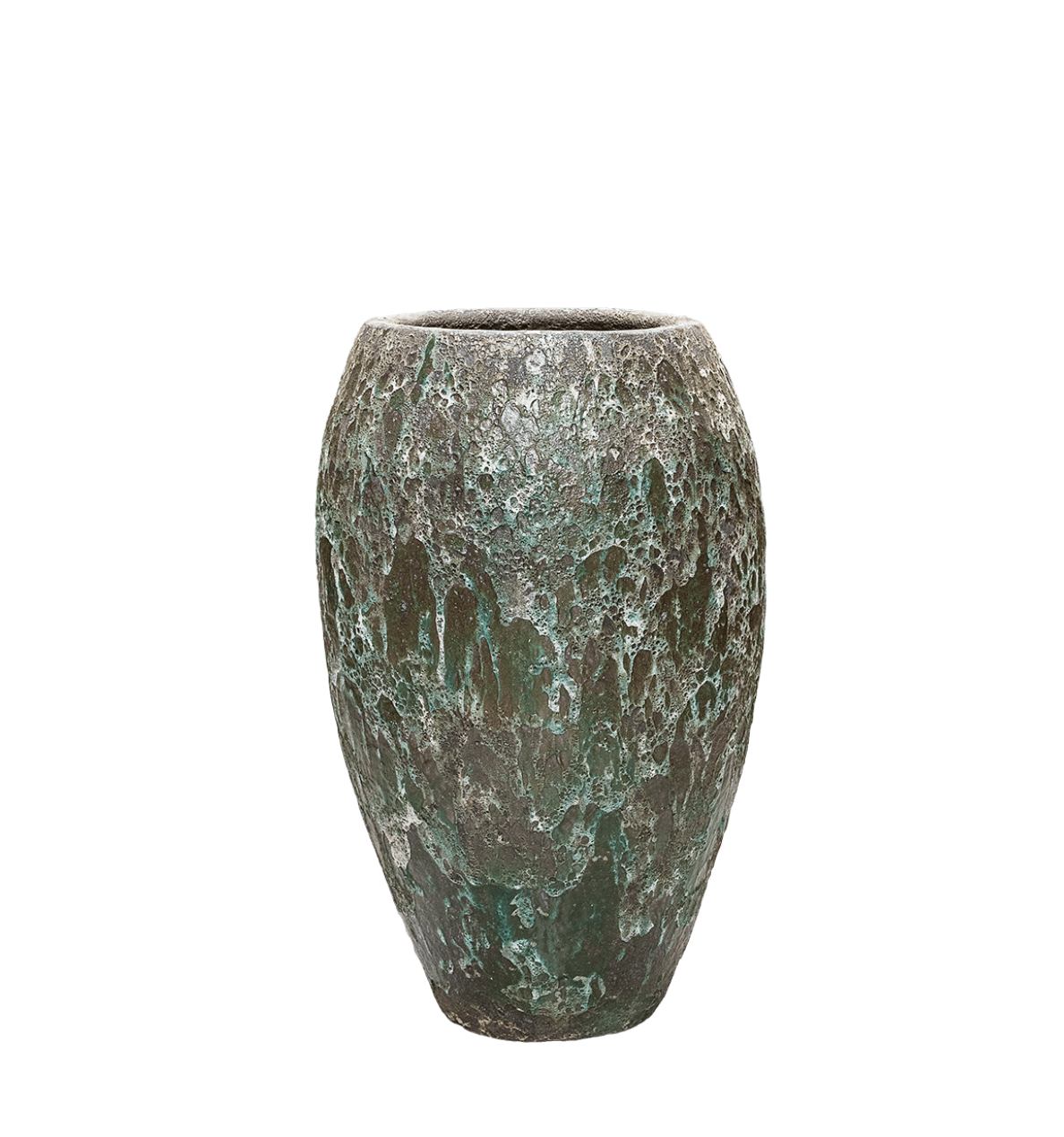 Buitenpotten Lava green: buitenpotten met een prachtige steenstructuur. Deze bloempotten buiten zijn maar liefst 95 cm hoog. Bloempotten voor buiten in groen jade. Buitenpotten met een natuurlijke look and feel. Potten groen waar je niet op uitgekeken raakt!