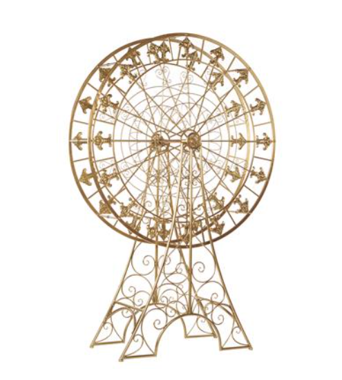 Gouden decoratie reuzenrad van het luxe merk Goodwill. Deze reuzenrad miniatuur is gemaakt van metaal. Miniatuur reuzenrad of reuzenrad model van maar liefst 220 cm hoogte. Model reuzenrad in de kleur goud uitgevoerd. Reuzenrad miniaturen die je nergens anders vindt!