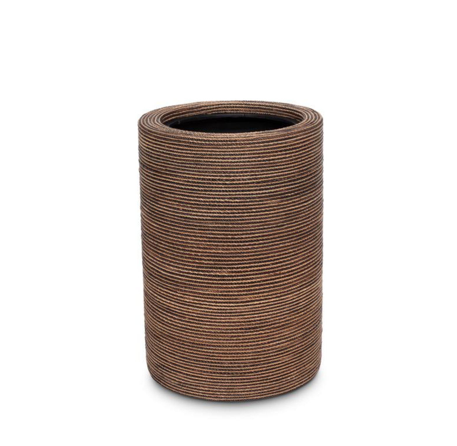 Design potten Lascaux: design potten voor binnen gemaakt van touw. Gave bloempotten binnen van 75 cm hoogte. Bloempotten binnen groot, origineel design. Unieke bloempotten binnen hoog voor een hip of Scandinavisch interieur.