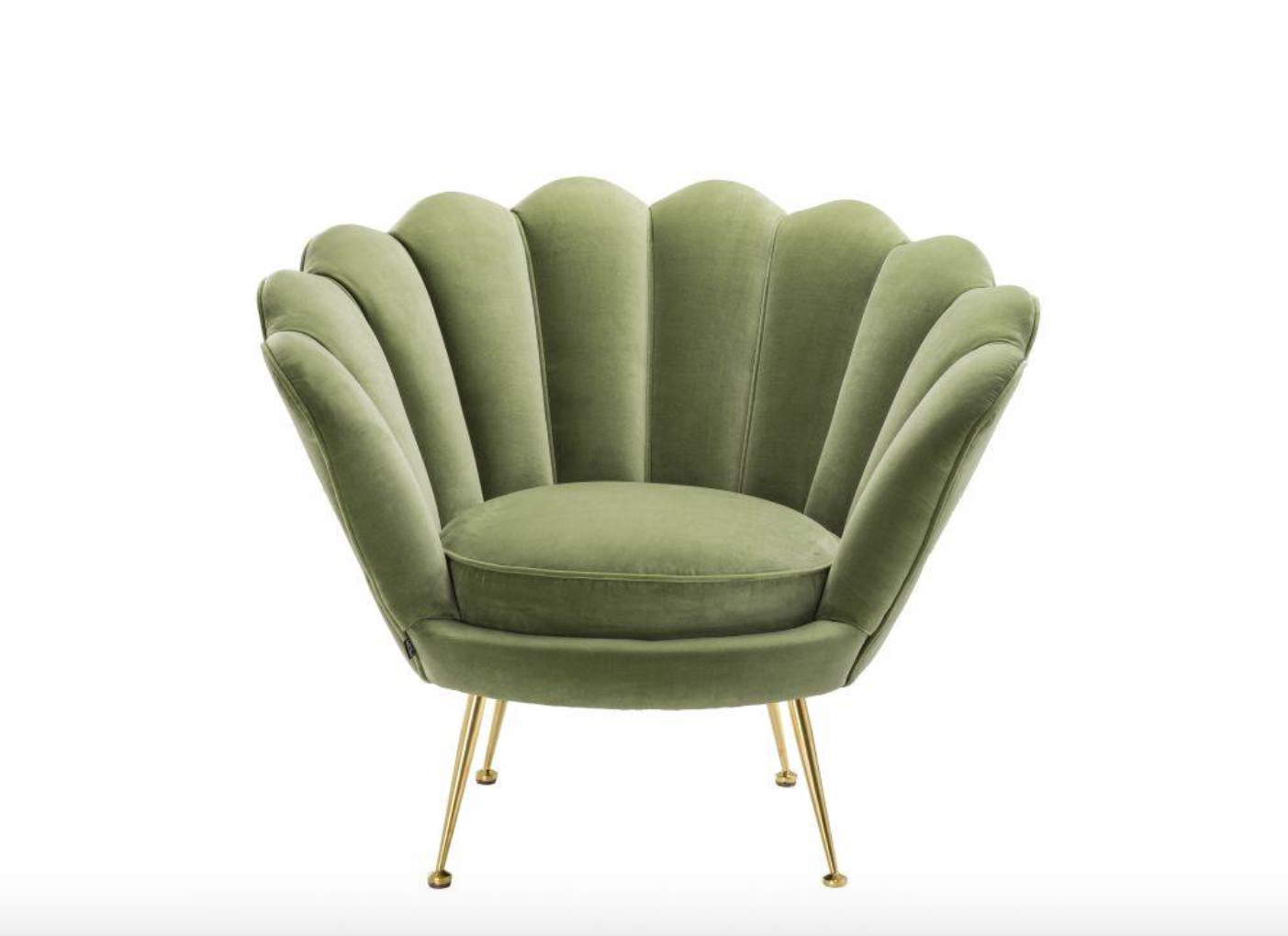 Designstoel Trapezium van Eichholtz. Design stoelen in de vorm van een grote oesterschelp. Design stoel van Eichholtz, in vijf prachtige kleuren leverbaar. Eichholtz stoelen in een effen kleurpatroon. Deze luxe relaxstoelen van Eichholtz zijn in vijf verschillende kleuren leverbaar: