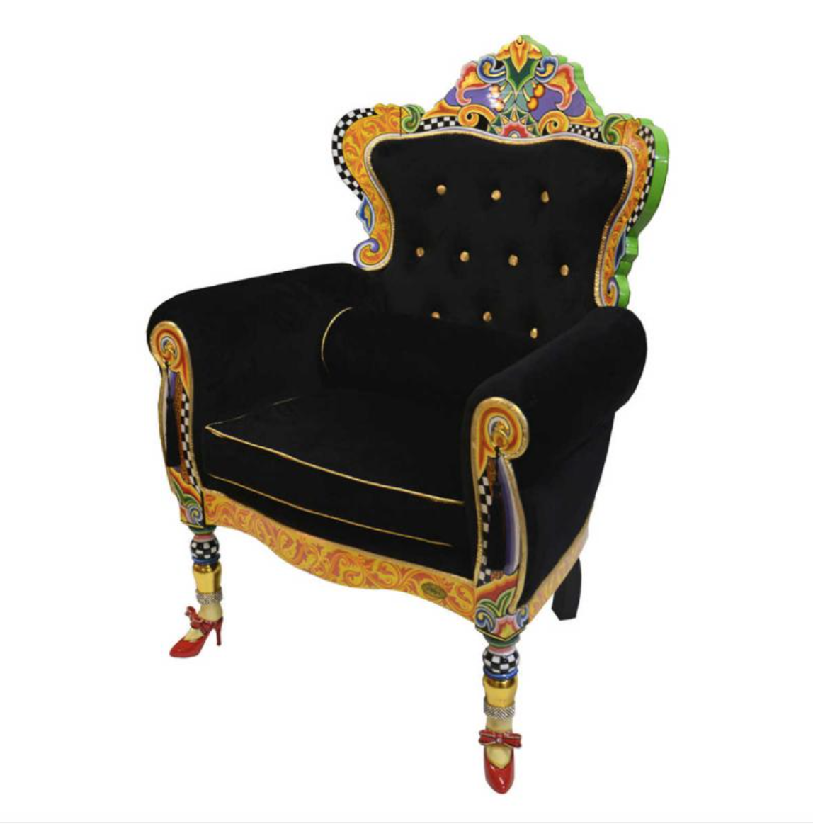Zwarte fauteuil crazy versailles. Zwarte fauteuils met klassieke details. Deze zwarte relaxfauteuil heeft hele gave rode schoentjes. Opvallende, zwarte relaxstoel in Versailles stijl. Zwarte fauteuils met pluche bekleding. Kortom, een luxe fauteuil zwart met een zeer warme uitstraling!