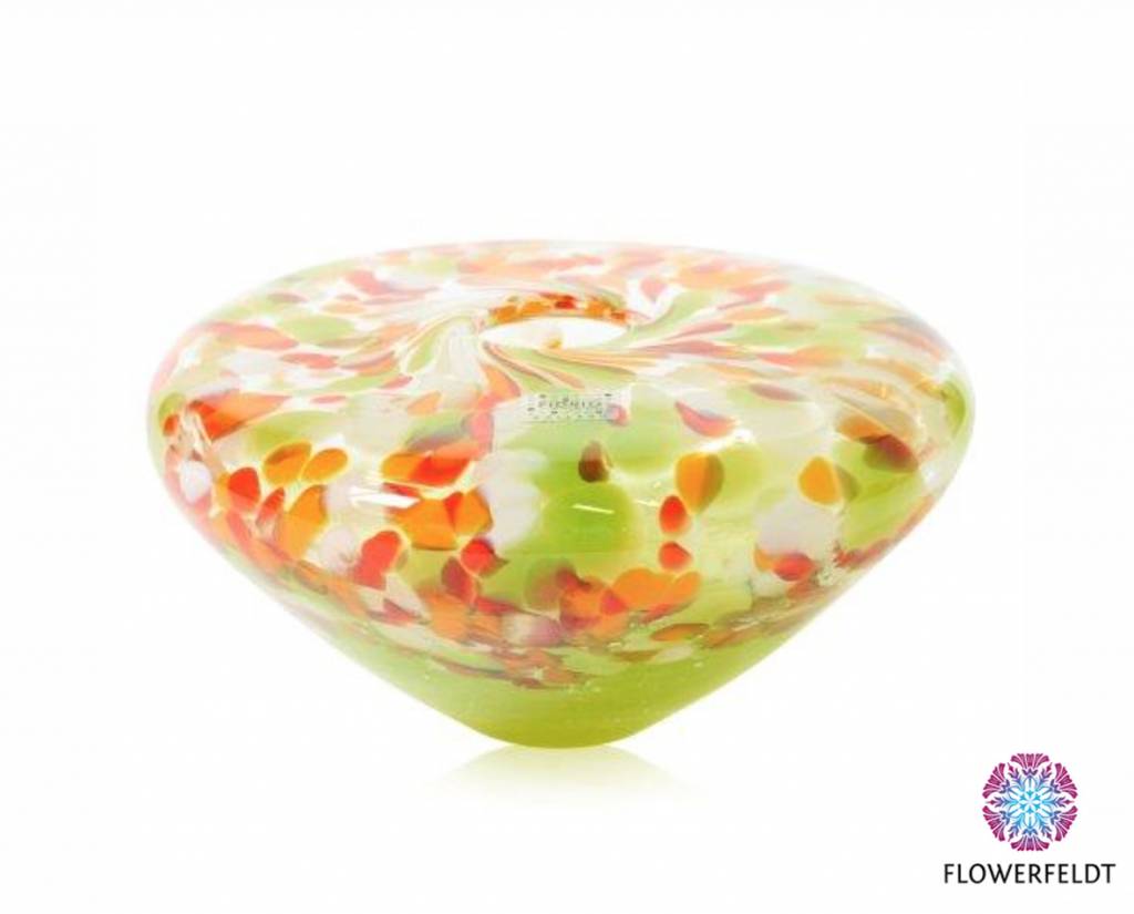 De ufo vaas splash Forest heeft een vrolijk lijnenspel. Het extra dikke glas en tijdloze design garanderen dat je lang plezier beleeft aan dit Flowerfeldt® product.