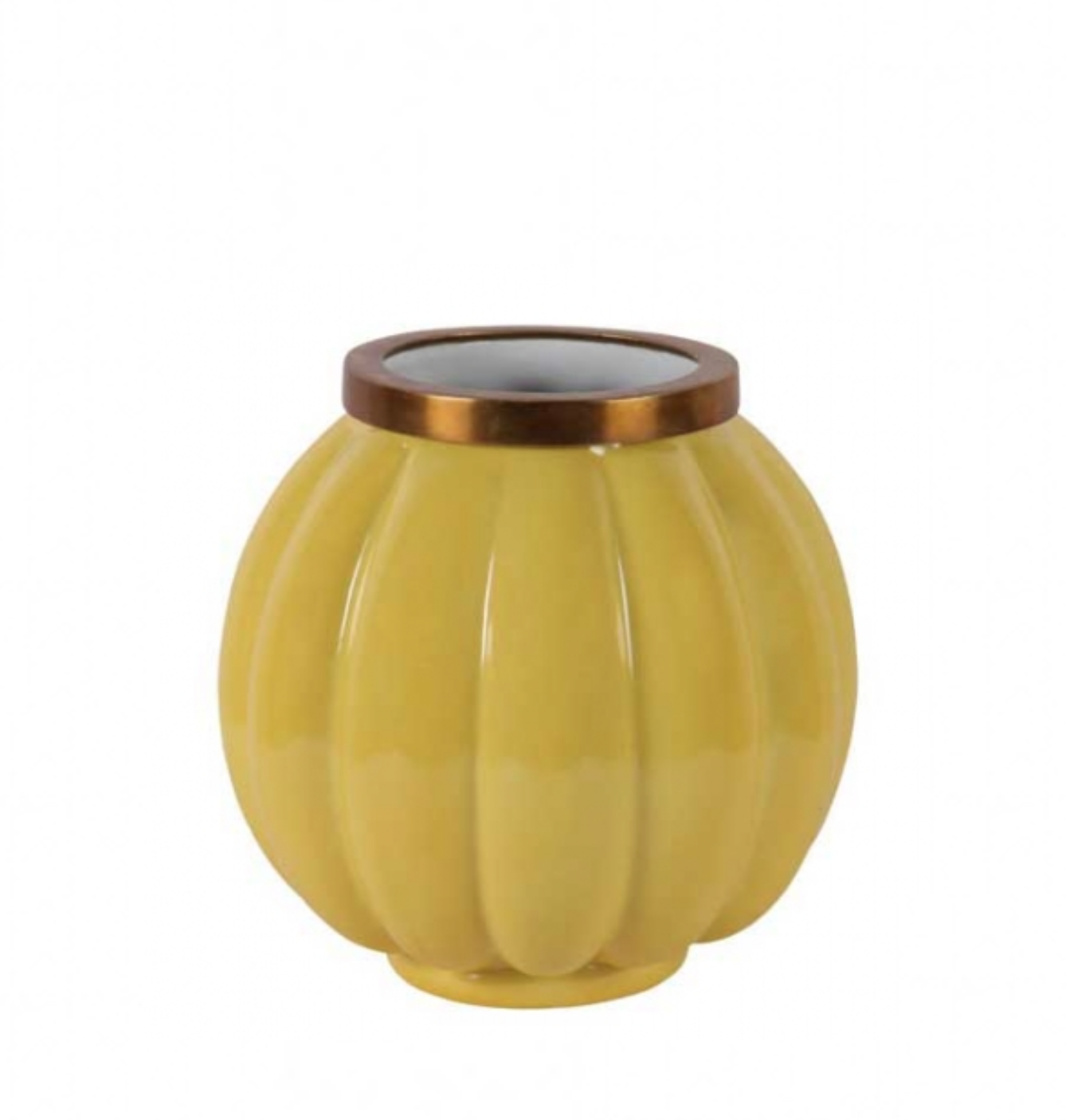 Op zoek naar een gele pot met stijl? Bekijk dan de gele pot Citrine. Potten geel gemaakt van hoogwaardig porselein. Luxe potten met bronzen rand. Gele potten in organisch vorm. Gele pot Citrine is een decoratie pot van 22 cm hoogte. Deze luxe potten geven extra kleur aan je interieur!