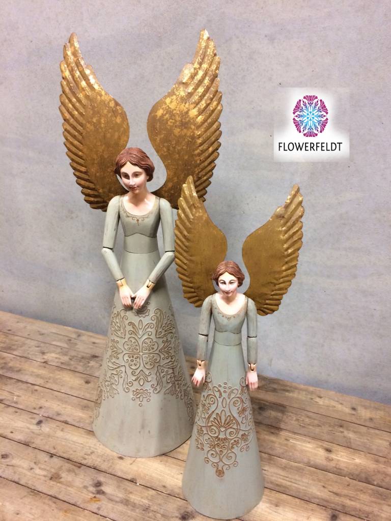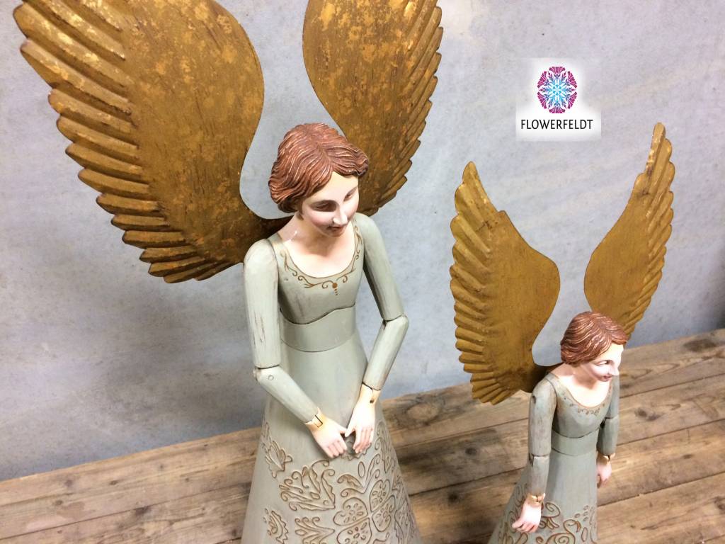 Grote decoratie engel uit de engelen collectie van Flowerfeldt®. Houten engel figuur voor echte smaakmakers. Deze grote engel figuur is handgemaakt en chic. Moderne decoratie engelen van 90 cm. Deze houten engel is gemaakt van hout en metaal. Luxe engel beeld of engel figuur die je nergens anders ziet!