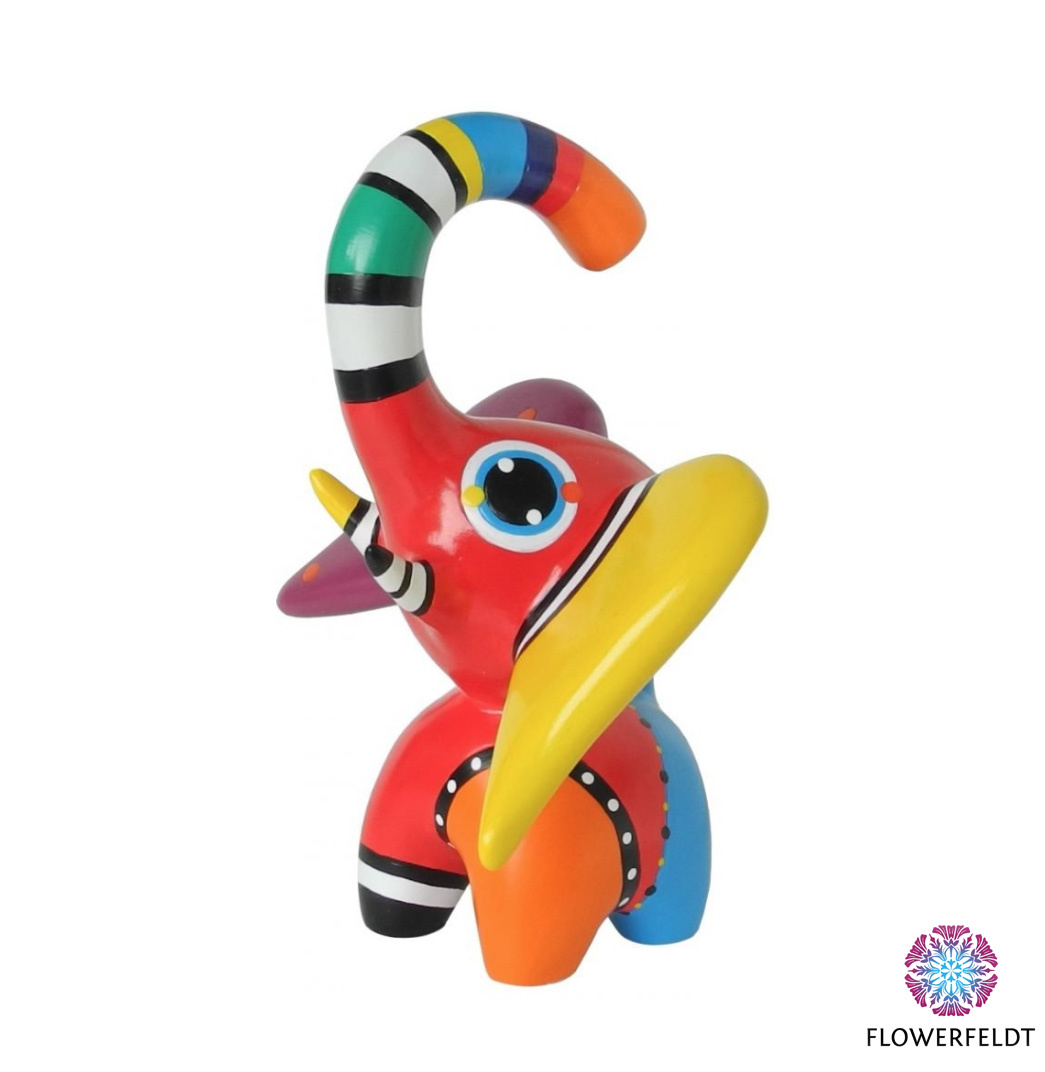 Olifant figuurtje Hugo van Jacky Art is een trendy olifant kunstbeeld uit de collectie van Jacky Zegers. Olifant kunstbeeldje Hugo van Jacky Zegers is een pop art olifant beeldje. Olifant figuur gemaakt van kunsthars. Een super vrolijke decoratie olifant! Deze olifanten beelden zijn met de hand beschilderd. Deze grappige olifanten kunstbeelden zijn dwars en origineel. Perfecte eye-catcher voor je interieur! Of een bijzonder cadeau waar je wél vrolijk van wordt.