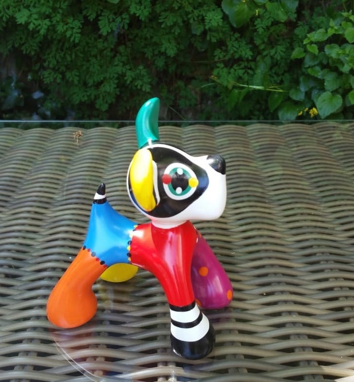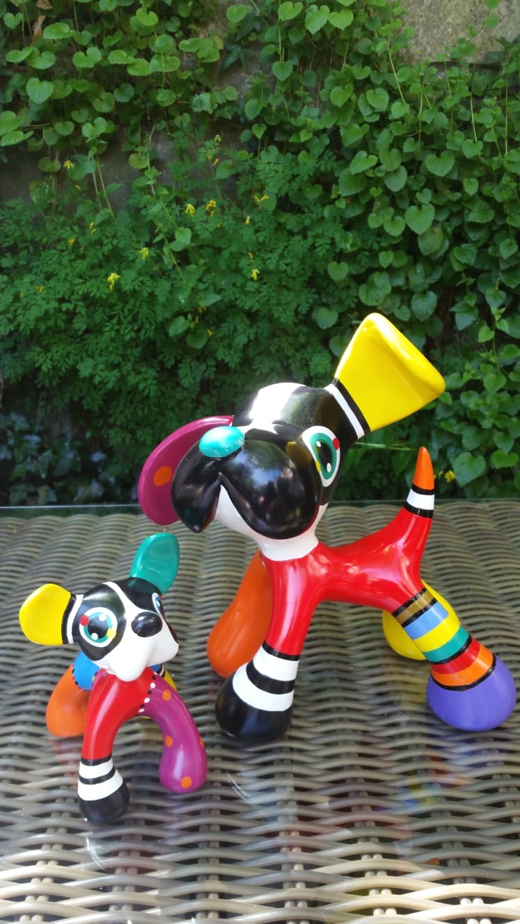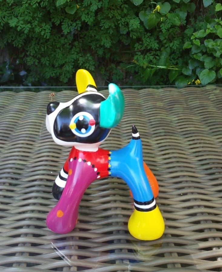 Honden beeldje Junior van Jacky Art is een trendy hond beeld of hond figuur uit de collectie van Jacky Zegers. Hond kunstbeeldje Junior van Jacky Zegers is een pop art hond figuurtje. Hond figuur of hond beeld gemaakt van kunsthars. Een super vrolijke decoratie hond! Deze honden beelden zijn met de hand beschilderd. Deze gave honden kunstbeelden zijn dwars en origineel. Perfecte eye-catcher voor je interieur! Of een bijzonder cadeau waar je wél vrolijk van wordt.