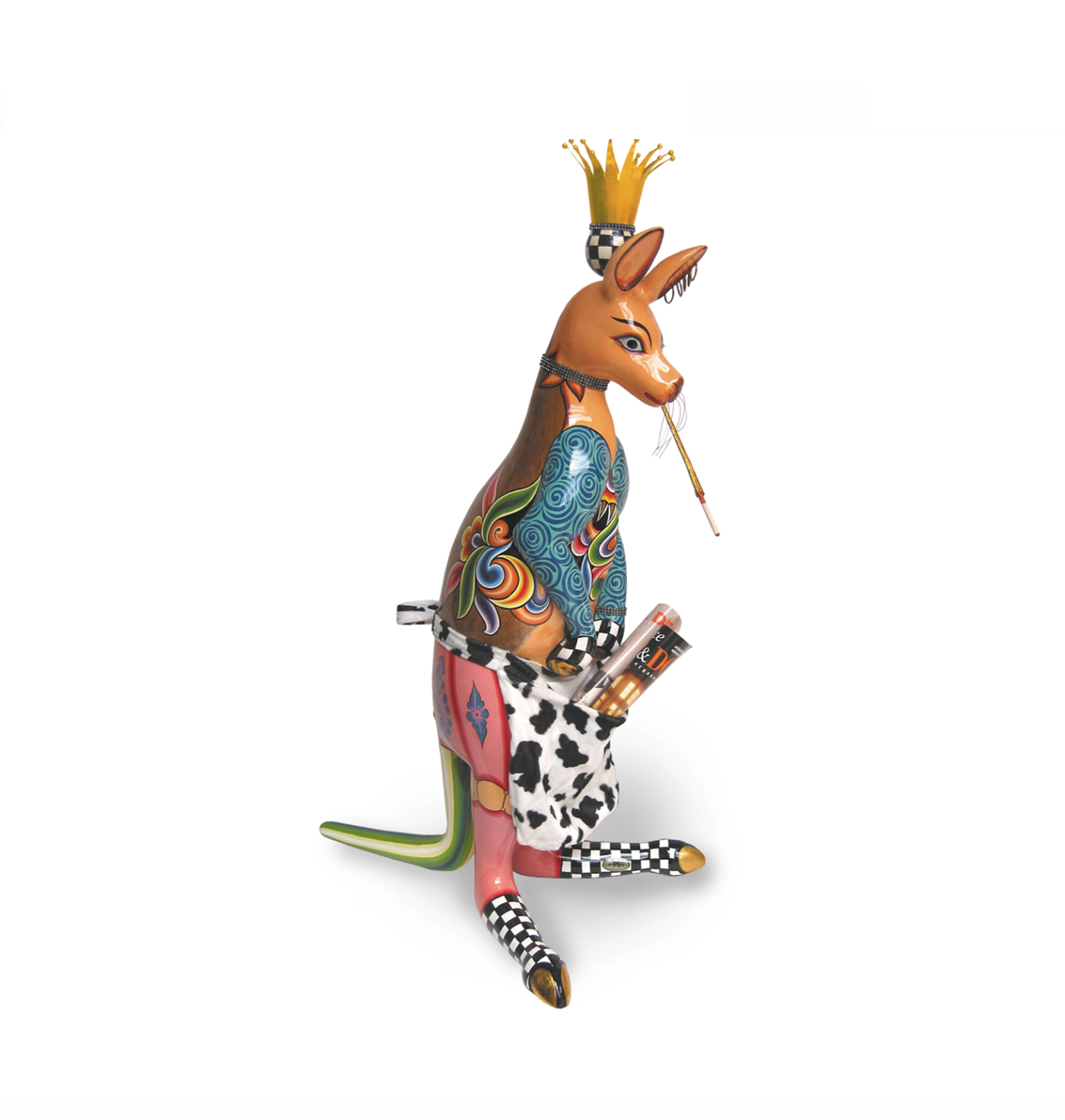 Groot kangoeroe beeld van 130 cm hoogte. Dit extravagante kangoeroe beeld geeft extra sfeer aan je interieur. Kangoeroe beelden met een eigentijdse twist. Deze kangoeroe figuur is handbeschilderd. Groot kangoeroe beeld of kangoeroe sculptuur die je interieur kleur en persoonlijkheid geeft.