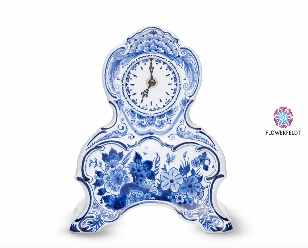 Delfts blauwe klok van porselein. Porseleinen tafelklok in delftsblauw. Zeer verfijnd afgewerkt. Klassieke klokken gemaakt van het beste porselein. Decoratie tafelklokken met uitstraling. Deze luxe klokken zijn door een meesterschilder vakkundig beschilderd. Delftsblauwe tafelklok voor echte fijnproevers!