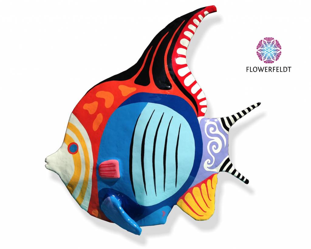 Kunstbeeld Butterfly fish is een bijzonder kunstbeeld uit de Flowerfeldt® collectie. Extra groot kunstbeeld van Jenny Derksen. Gemaakt van staal en polyester. Vervolgens is dit moderne vis beeld afgewerkt met 5 tot 7 lagen speciale coating lak. Dit kunst beeld van een koraalvlinder vis is met de hand beschilderd. Dit vis beeld is UV-bestendig en bestand tegen vorst. Daardoor is kunstbeeld Butterfly fish van Jenny Derksen zeer geschikt voor binnen en buiten.