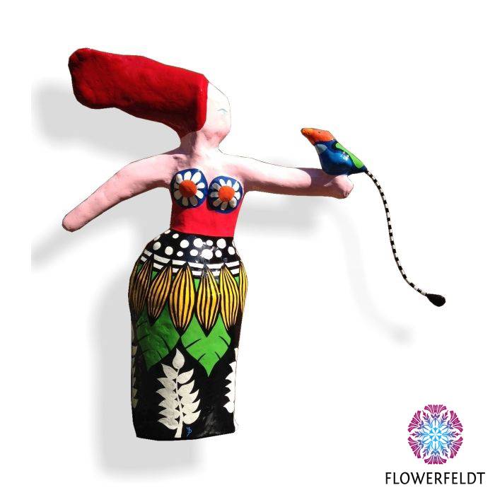 Kunstbeeld Exotic woman and bird is een exclusief kunstbeeld uit de Flowerfeldt® collectie. Extra groot kunstbeeld gemaakt van staal en polyester. Kunstbeeld van een exotische vrouw met vogel op haar hand. Dit unieke kunstbeeld is afgewerkt met 5 tot 7 lagen speciale coating lak. Tevens is dit moderne kunstbeeld met de hand beschilderd. Kunstbeeld Exotic woman and bird is UV-bestendig en bestand tegen vorst. Daardoor is dit abstracte kunstbeeld zeer geschikt voor buiten. Over kunstenaar Jenny Derksen