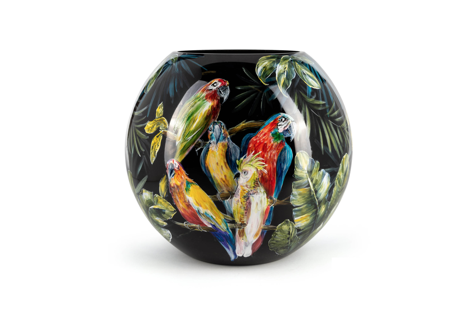 Luxe vazen Parrots: handbeschilderde vaas met papegaaien gedecoreerd