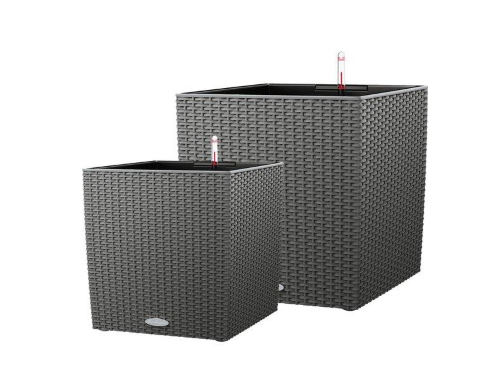 Plantenbak grijs Juneau: grijze plantenbakken met vlechtwerk-structuur. Grijze plantenbak, in twee maten leverbaar. Plantenbak buiten gemaakt van topkwaliteit. Deze antraciet grijze plantenbakken ogen modern en tijdloos. Plantenbakken grijs die je zowel binnen als buitenshuis kunt gebruiken. Doordat het vlechtwerk niet gelakt is blijft de grijze plantenbak Juneau gewoon mooi.