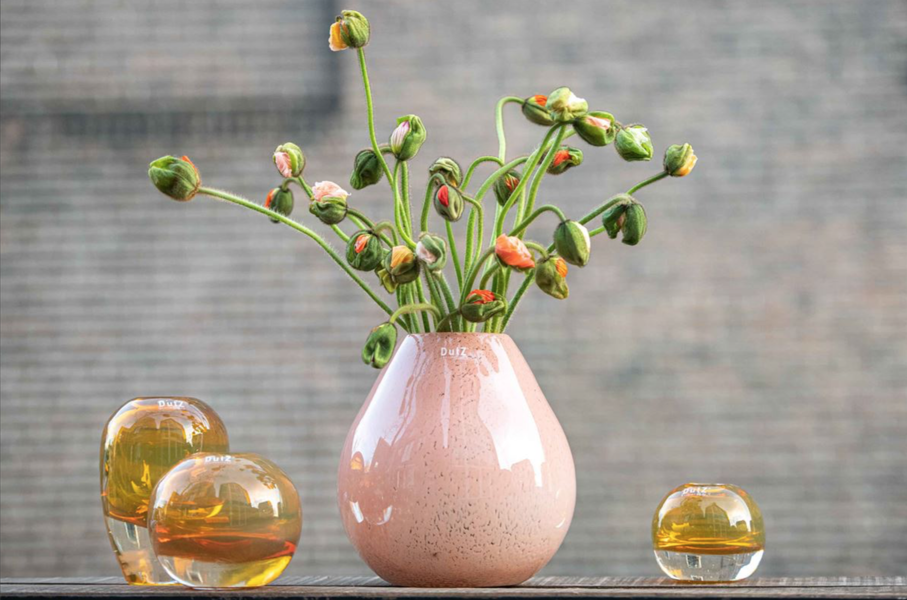 Flowerfeldt® werkt al jaren intensief samen met het Nederlandse merk DutZ. DutZ staat voor Durf Uitgesproken Anders Te Zijn. Bij DutZ voel je de enorme passie voor mondgeblazen glas.